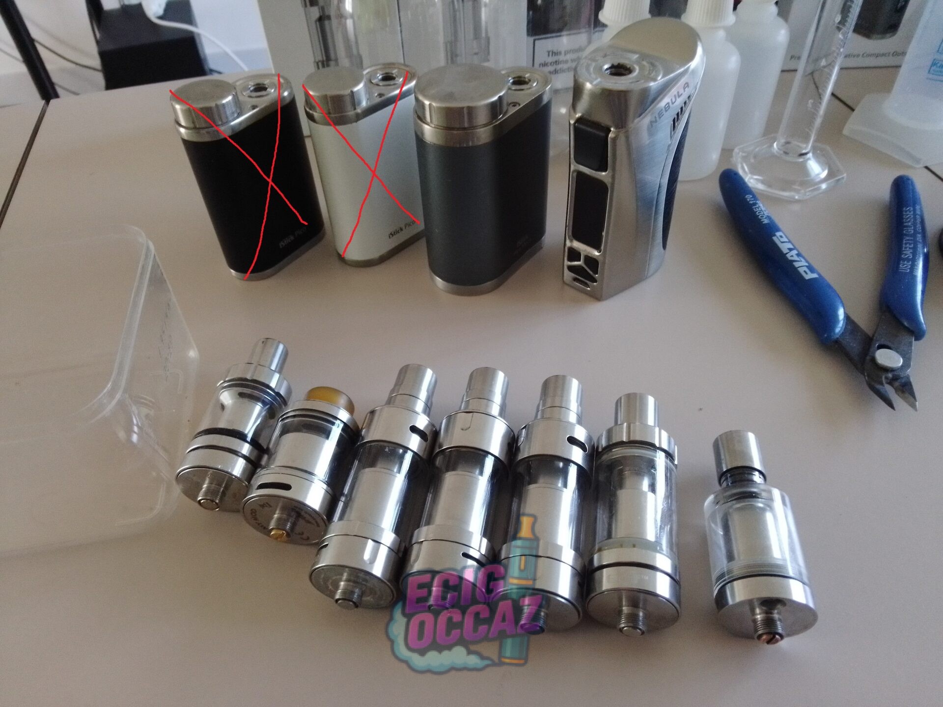 Le tout 50€ à retirer à Chantepie près de Rennes, un essai des mods sera fait pendant la vente. Possible pour 30€: 1 mod et 3 atomiseurs.
