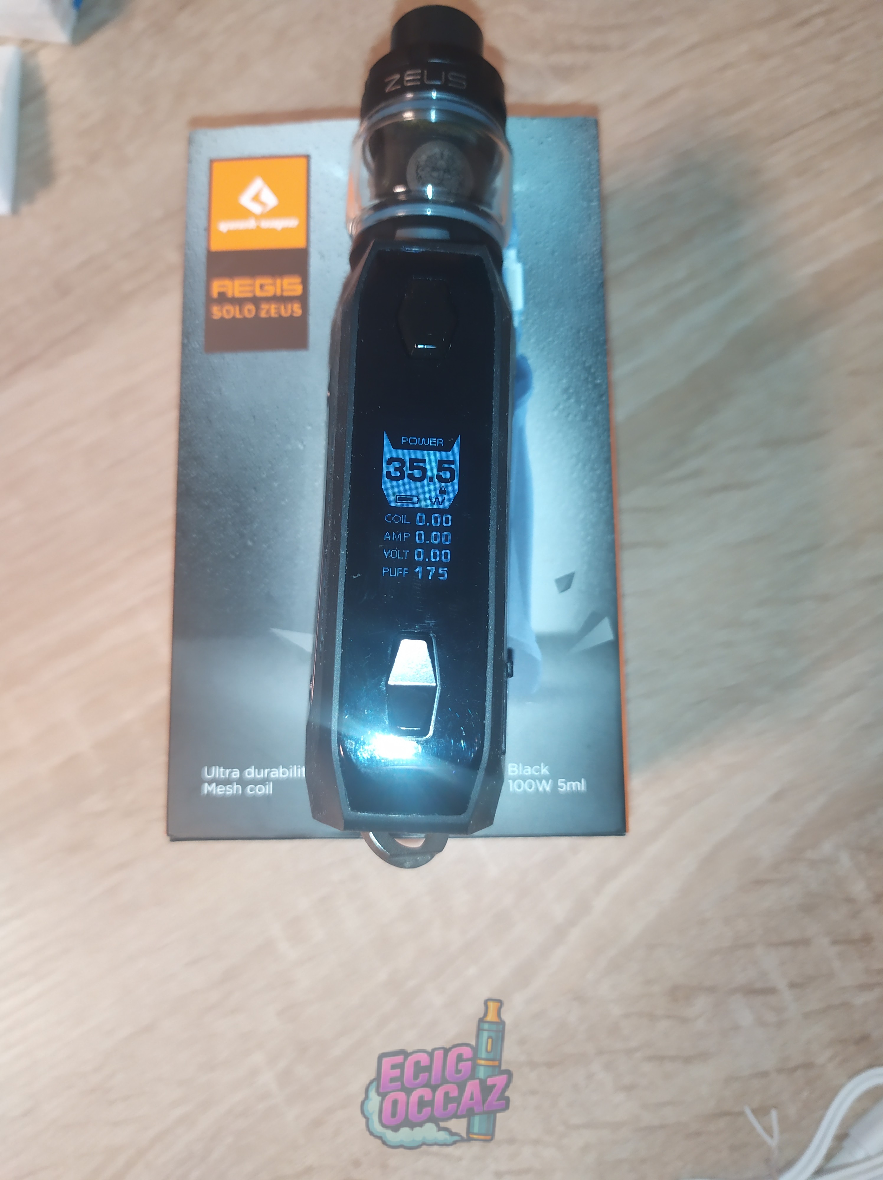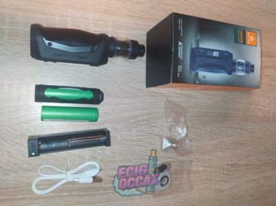 AEGIS SOLO ZEUS, il manque juste le coil que j’ai utilisé il reste celui en 0,4 qui est sur la photo. Vendu avec chargeur et 2 accu.