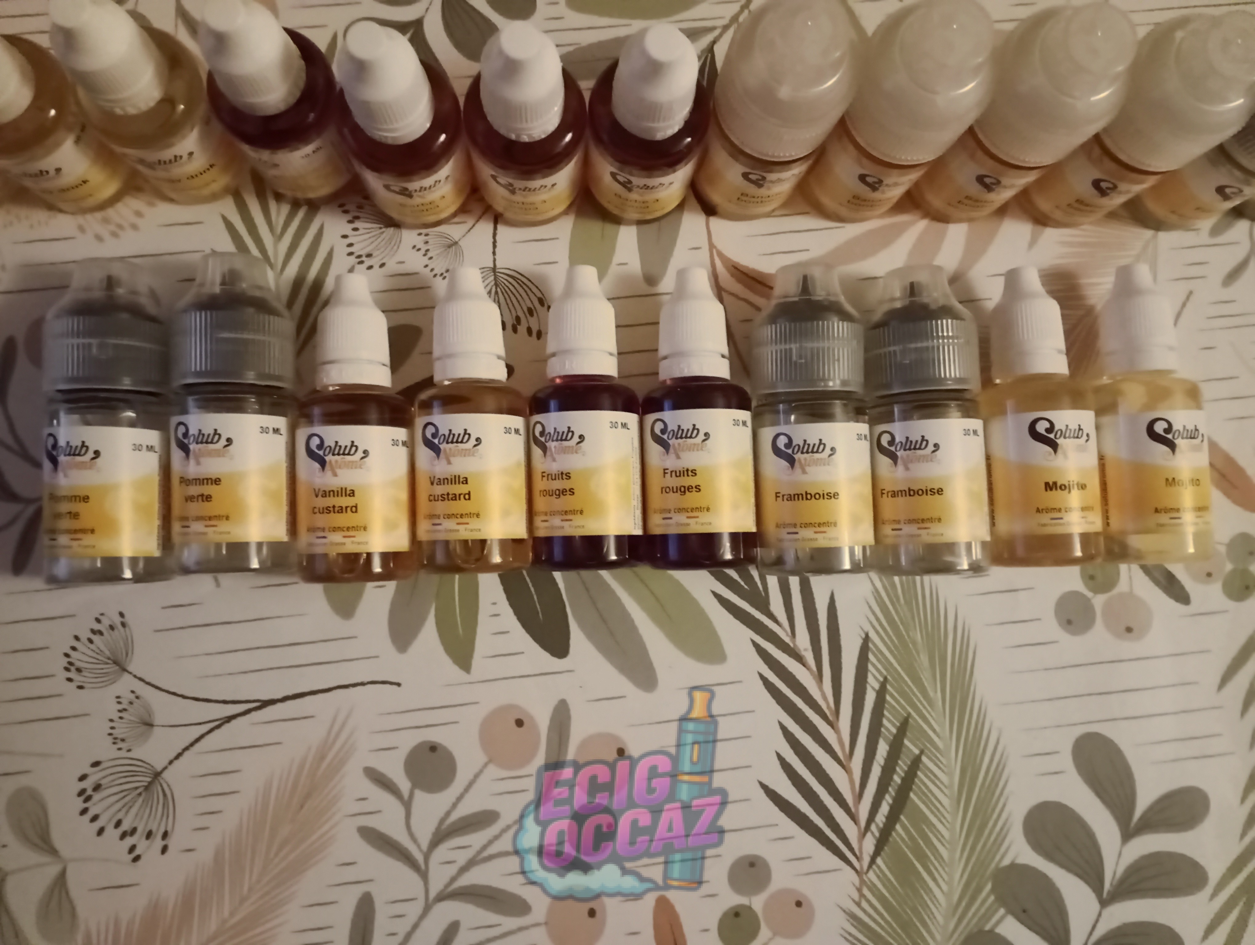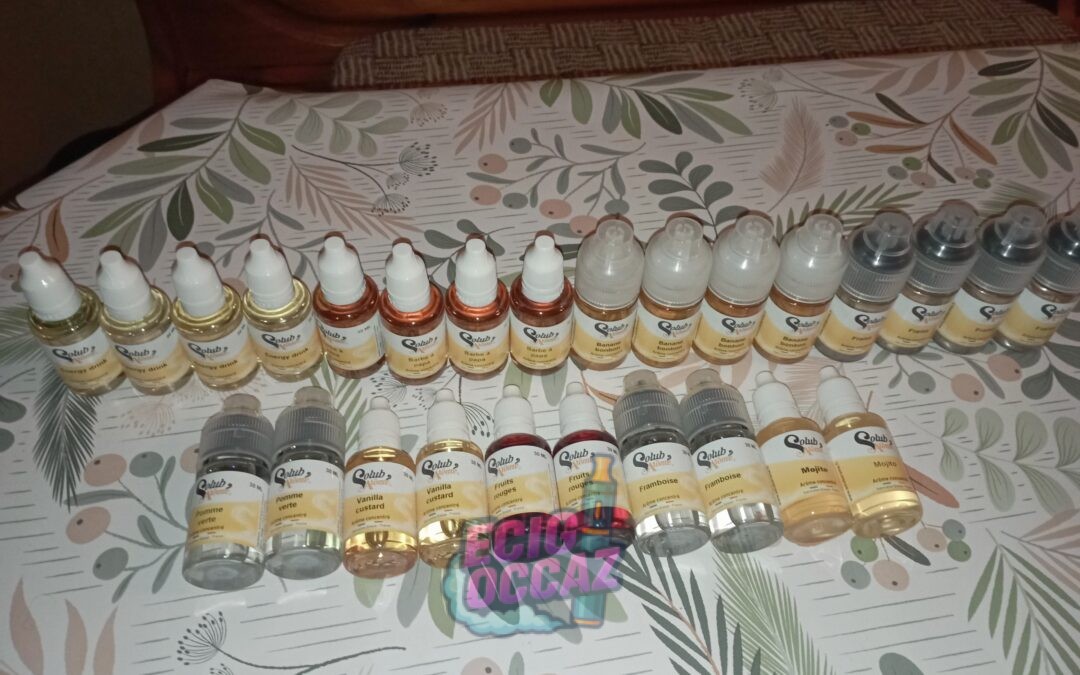 Je vend mes arômes de la marque Solubarome de 30ml chacun pour un total de 26 achetés sur E-fumeur pour le DIY. Vente uniquement en lot.
