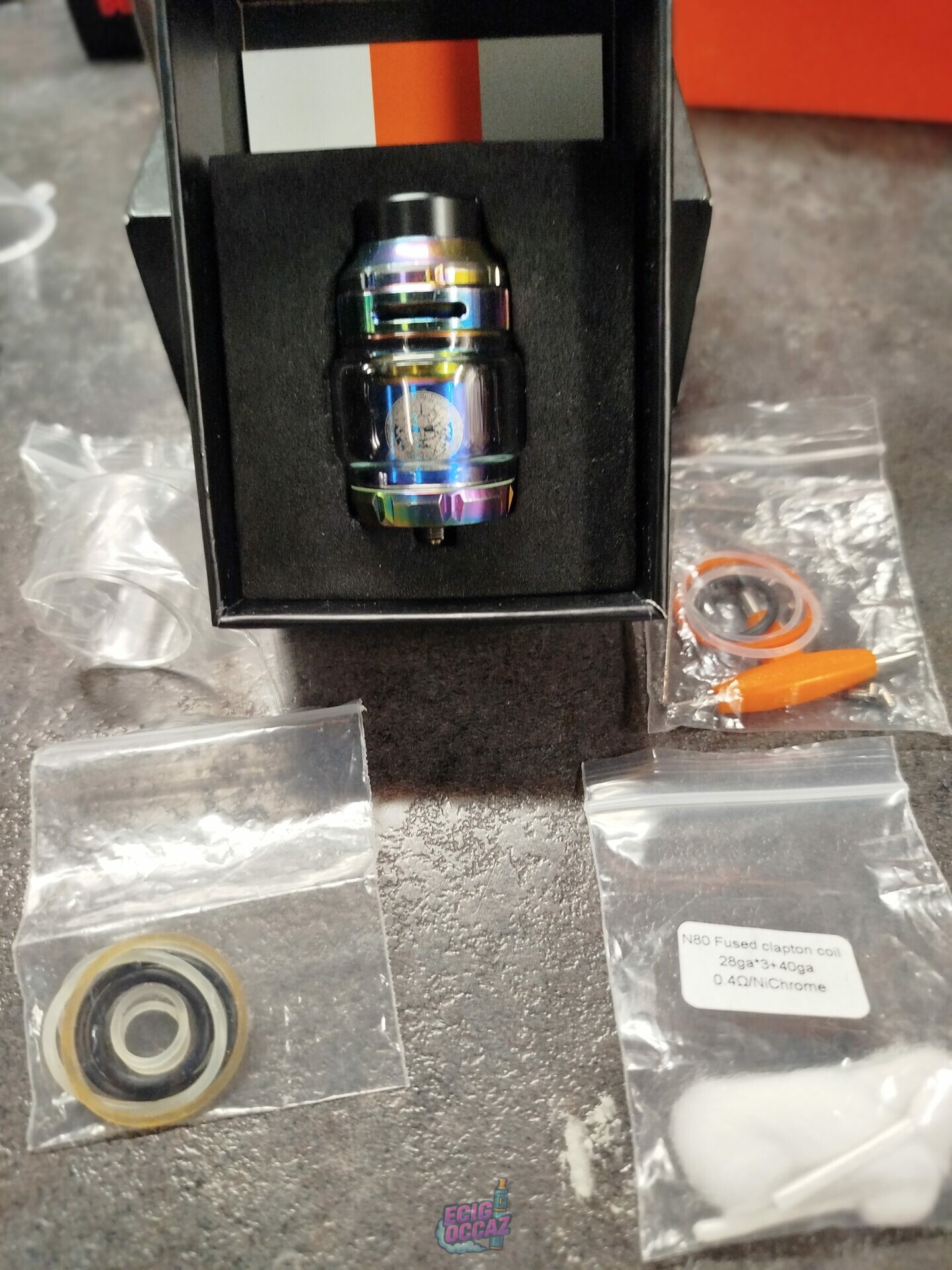Clearomiseur Zeus geek vape V2. J ai mis bon état car pas pour pièces mais à servi 😊. Pour Simple et double coils, saveur impeccable ! Livré avec sa boîte et ses joints de rechange.