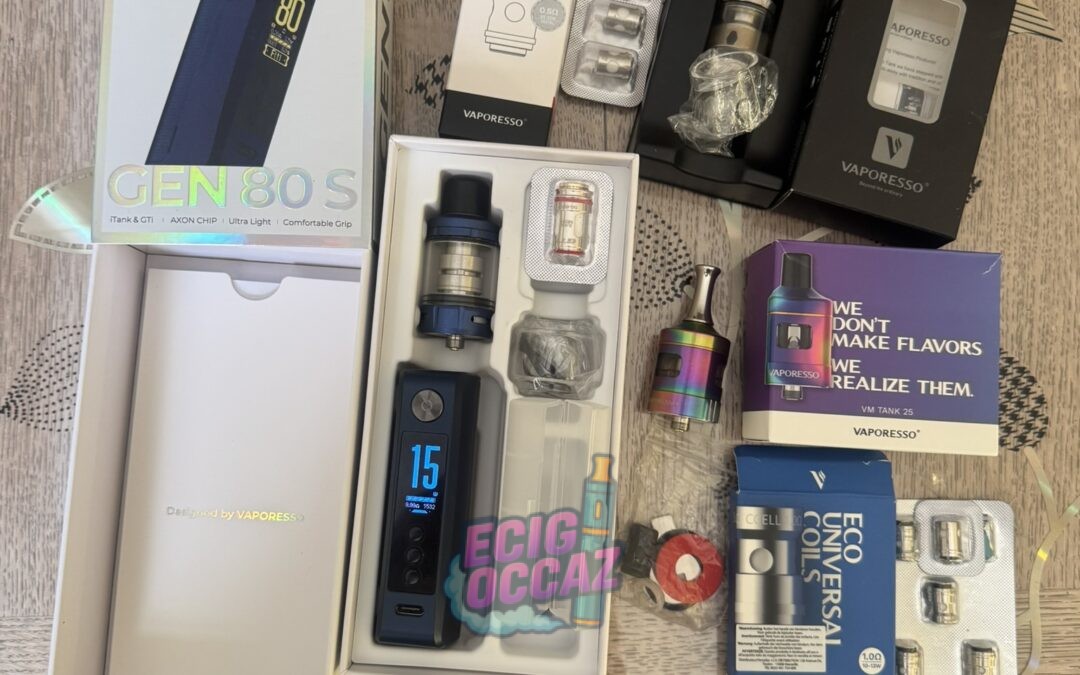 Je mets en vente un pack complet Vaporesso en excellent état, idéal pour quelqu’un qui cherche du matériel fiable et déjà prêt à l’emploi.