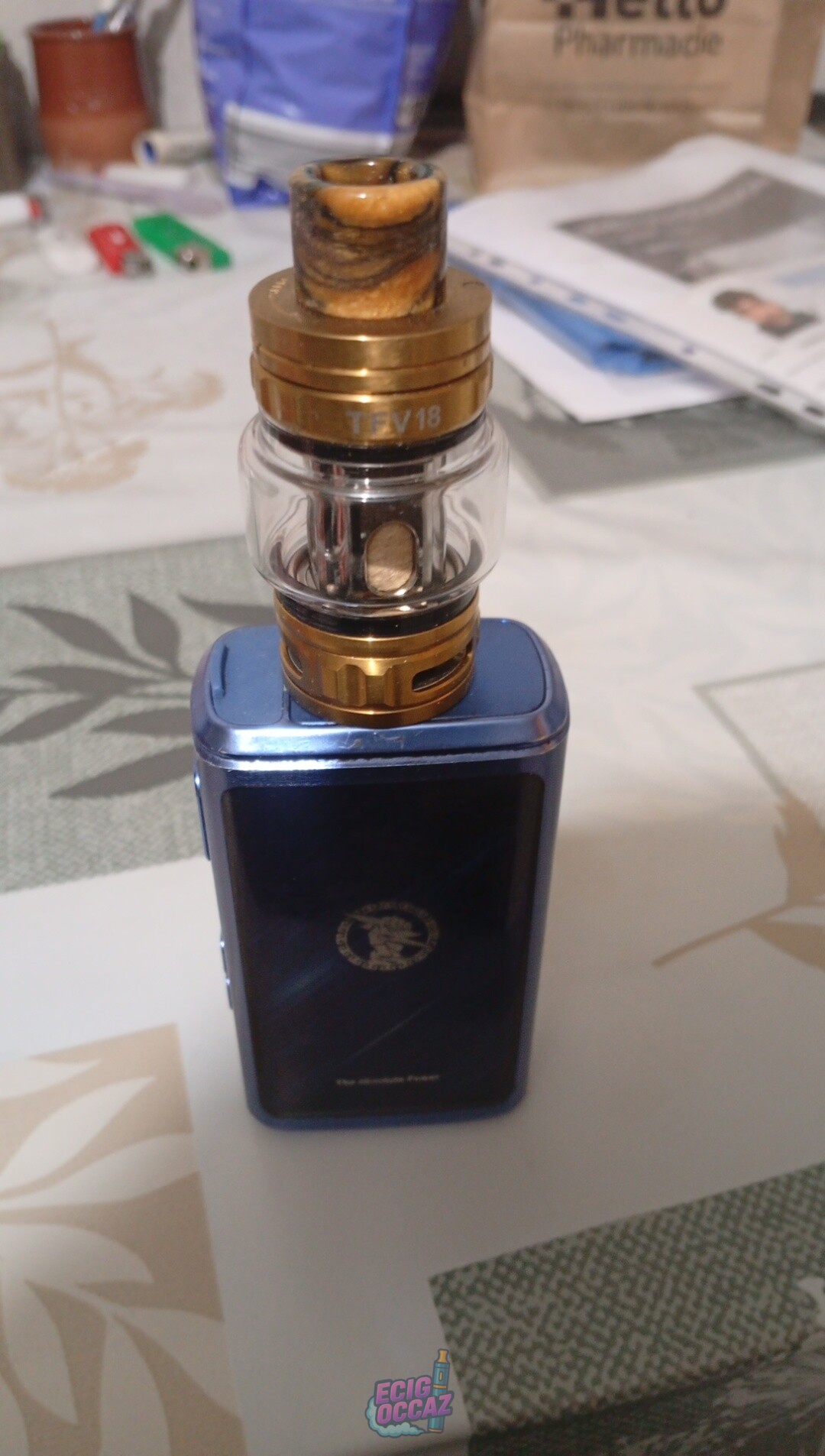 Clearomiseur TFV18 de chez arome et liquide couleur OR