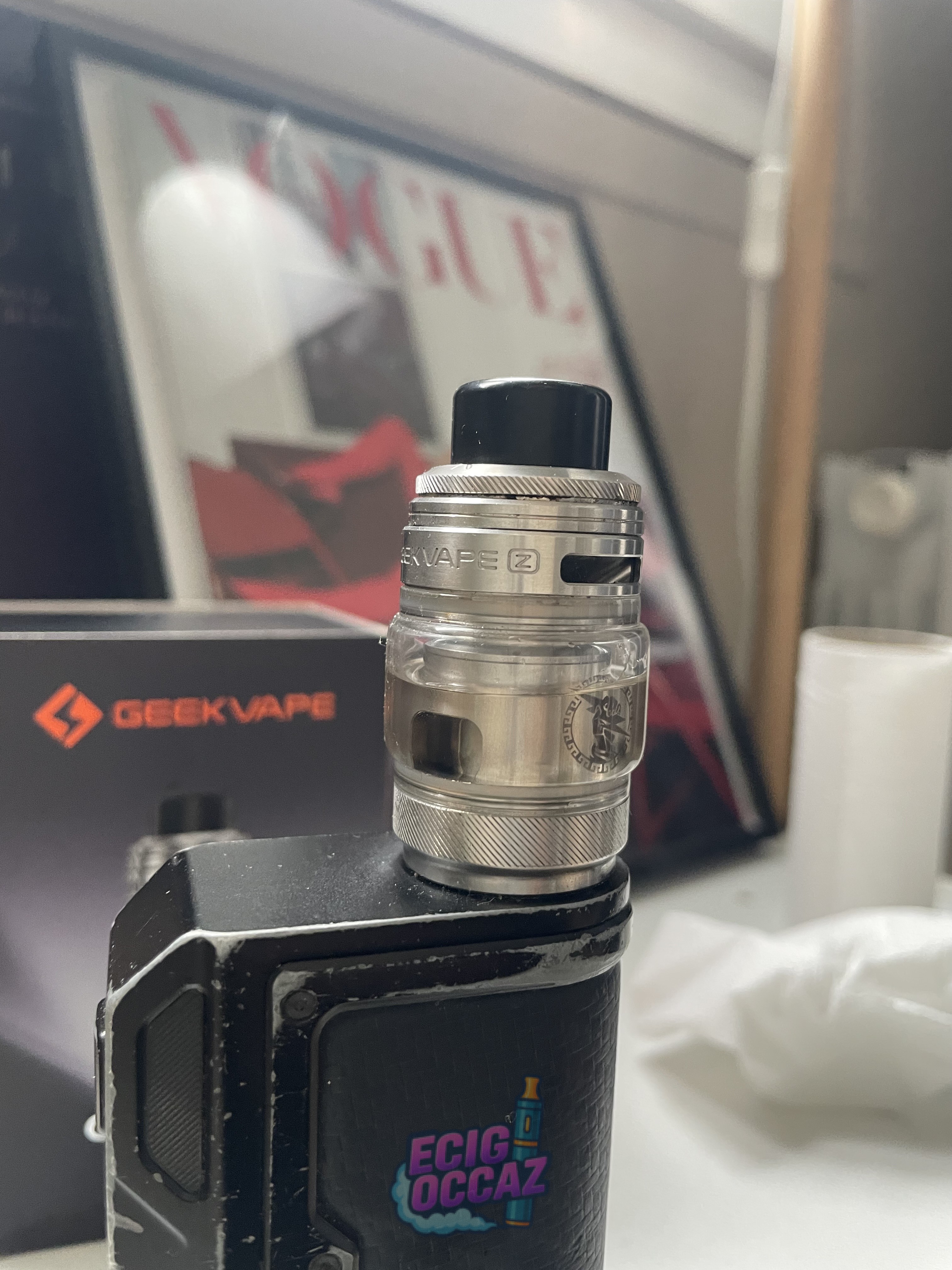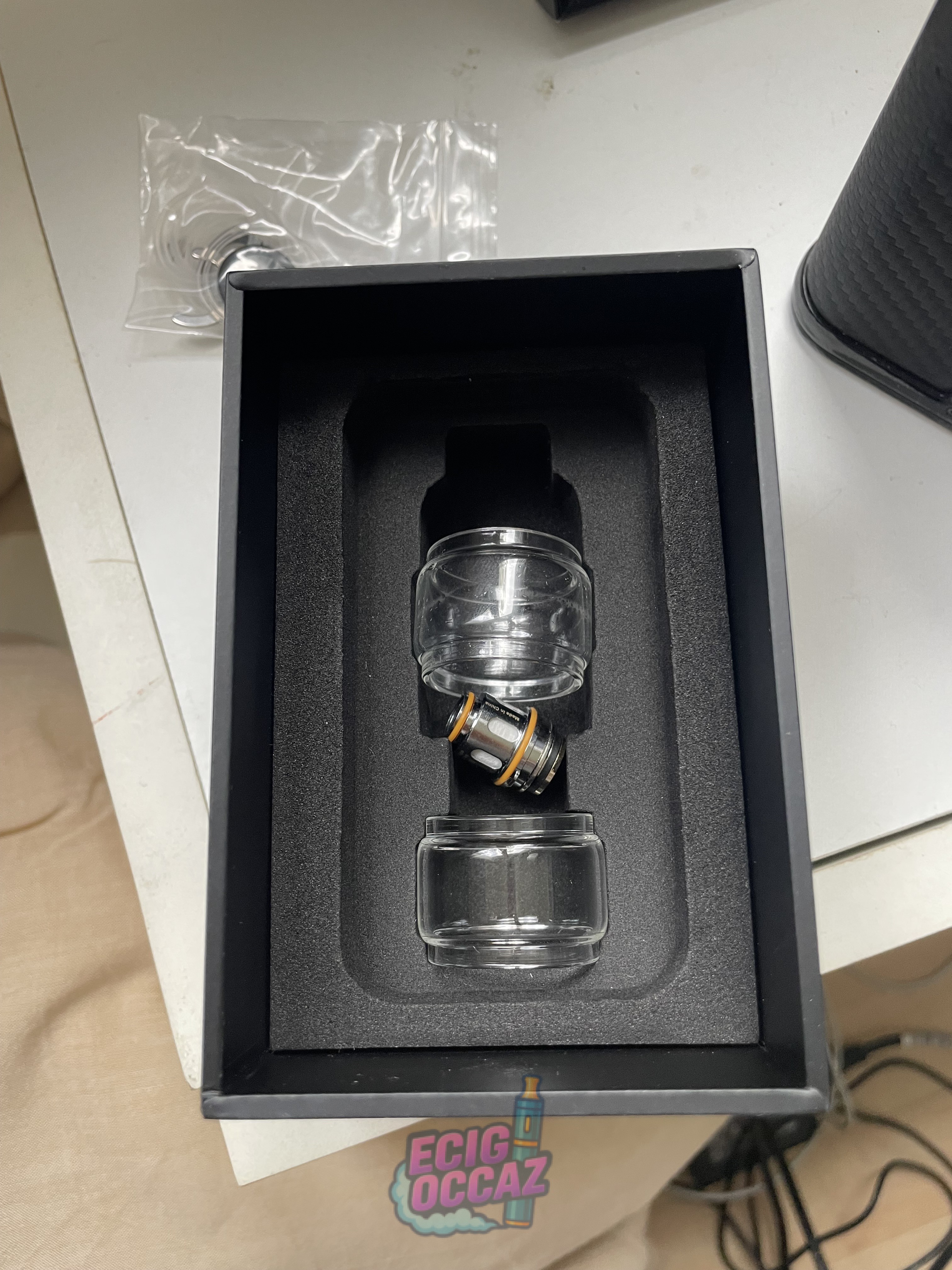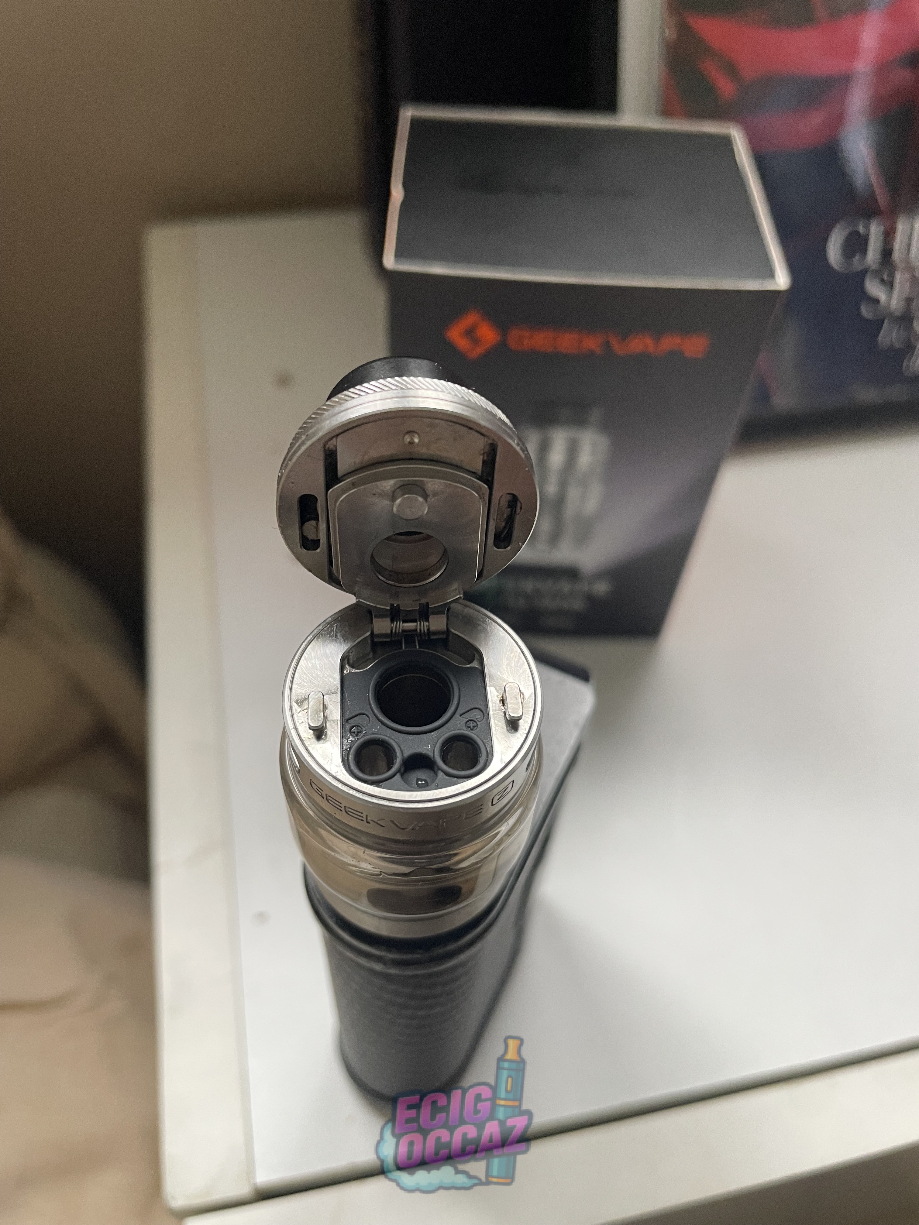 La tête en revanche est neuve et c’est un Geek Vape (acheter au prix de 30€)