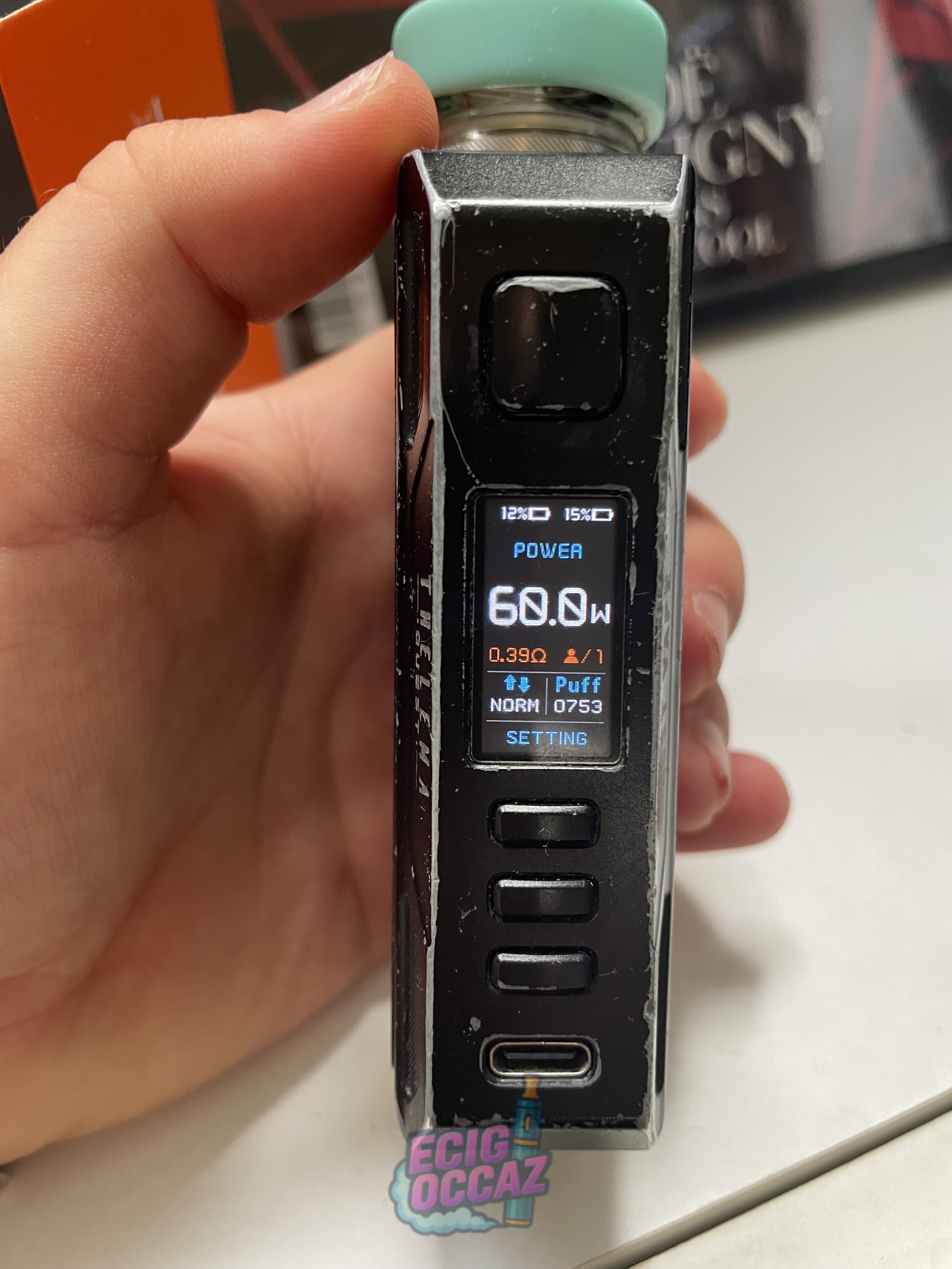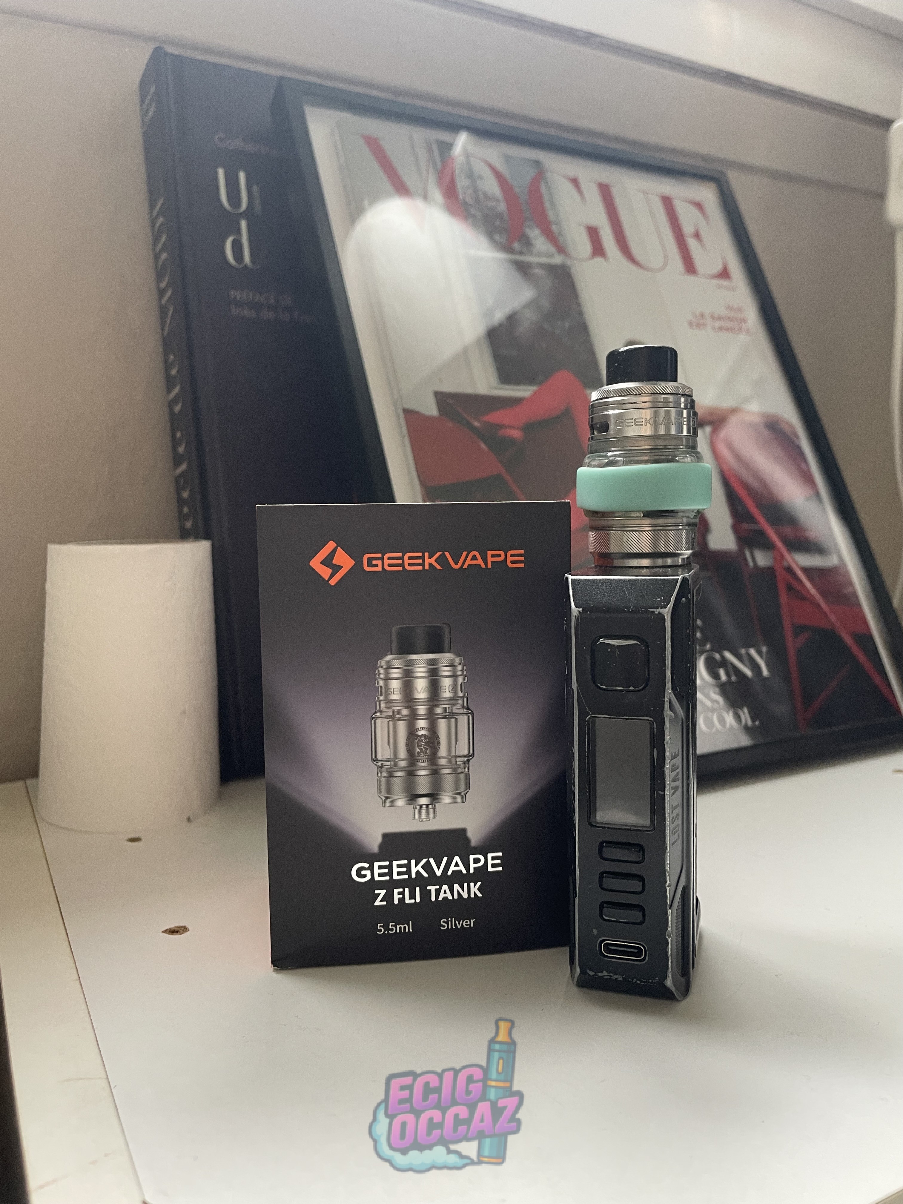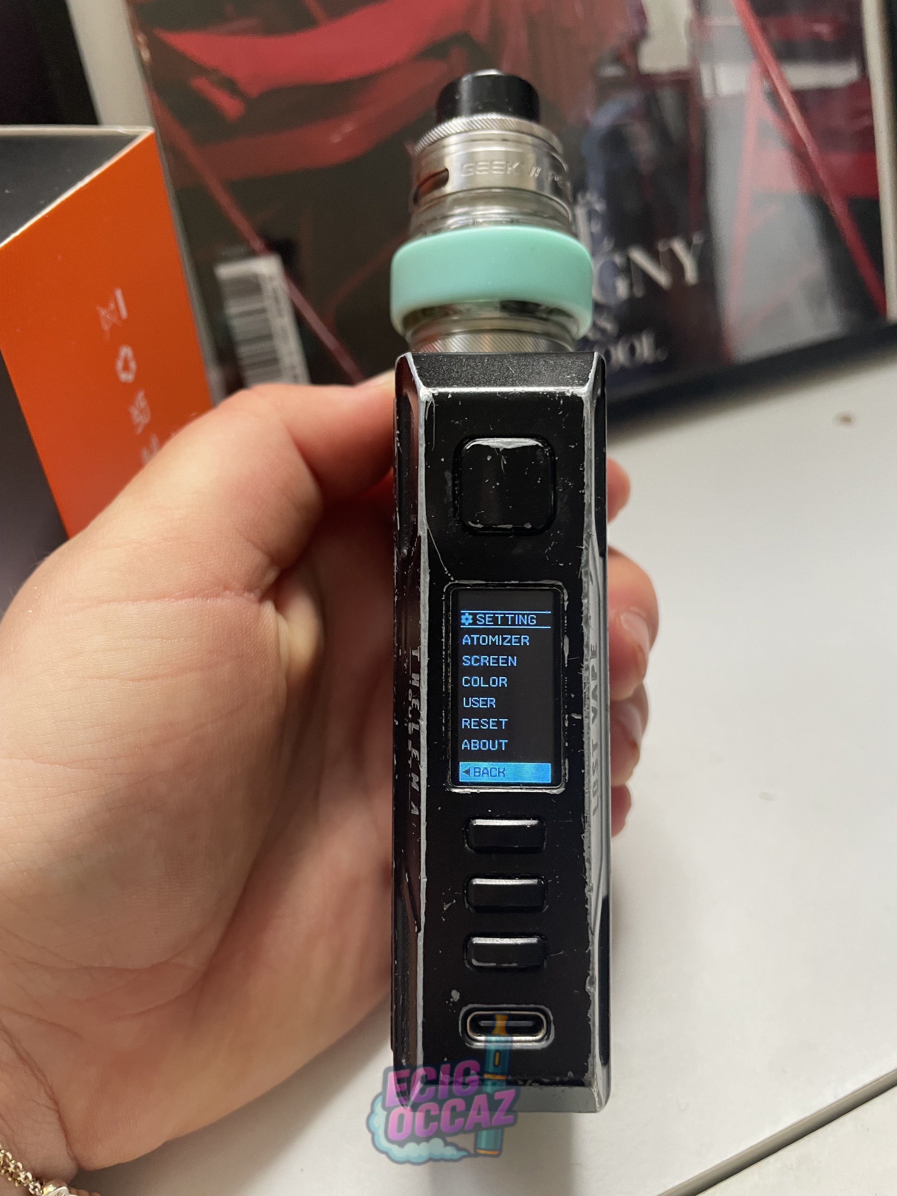La tête en revanche est neuve et c’est un Geek Vape (acheter au prix de 30€)