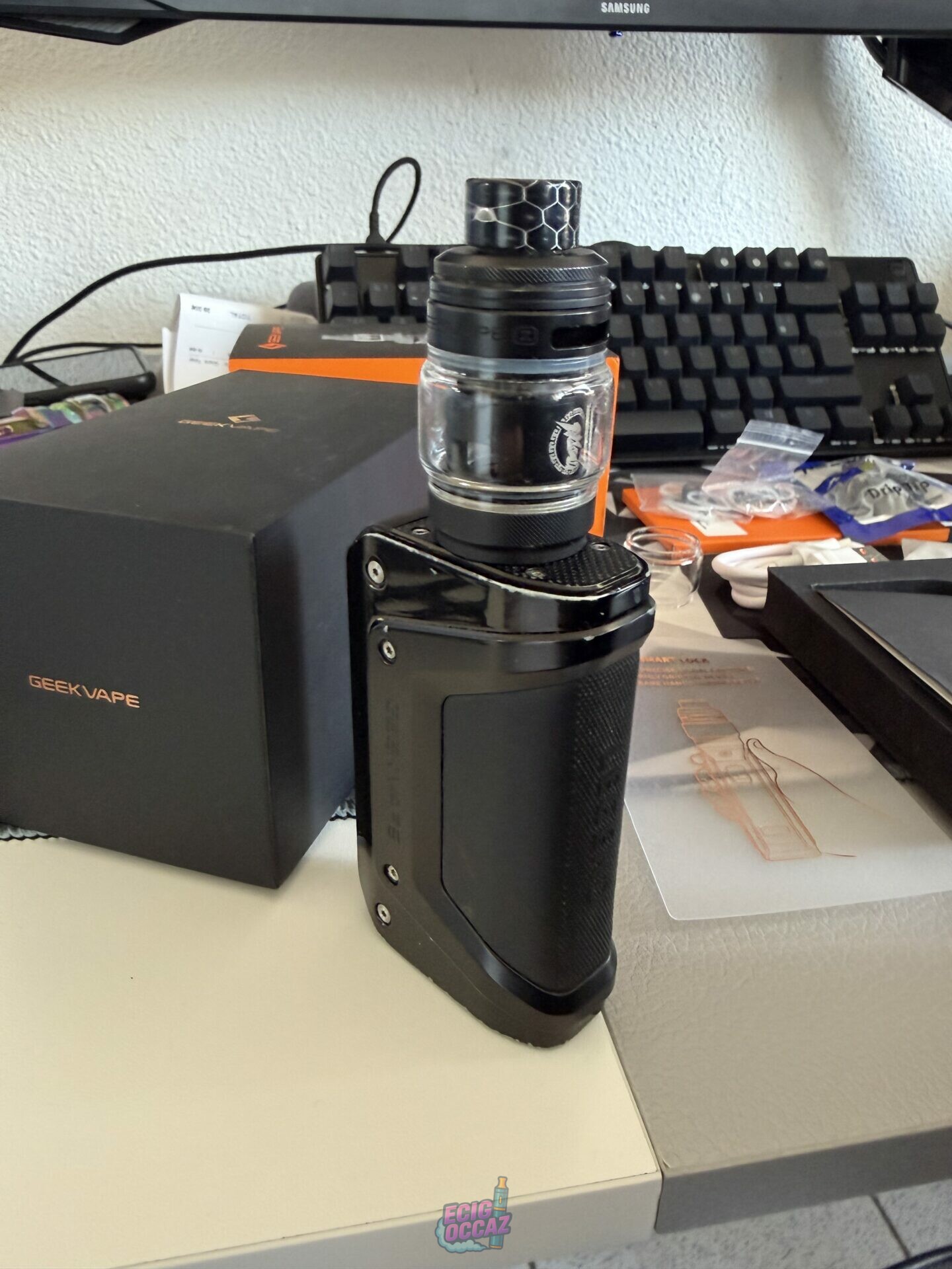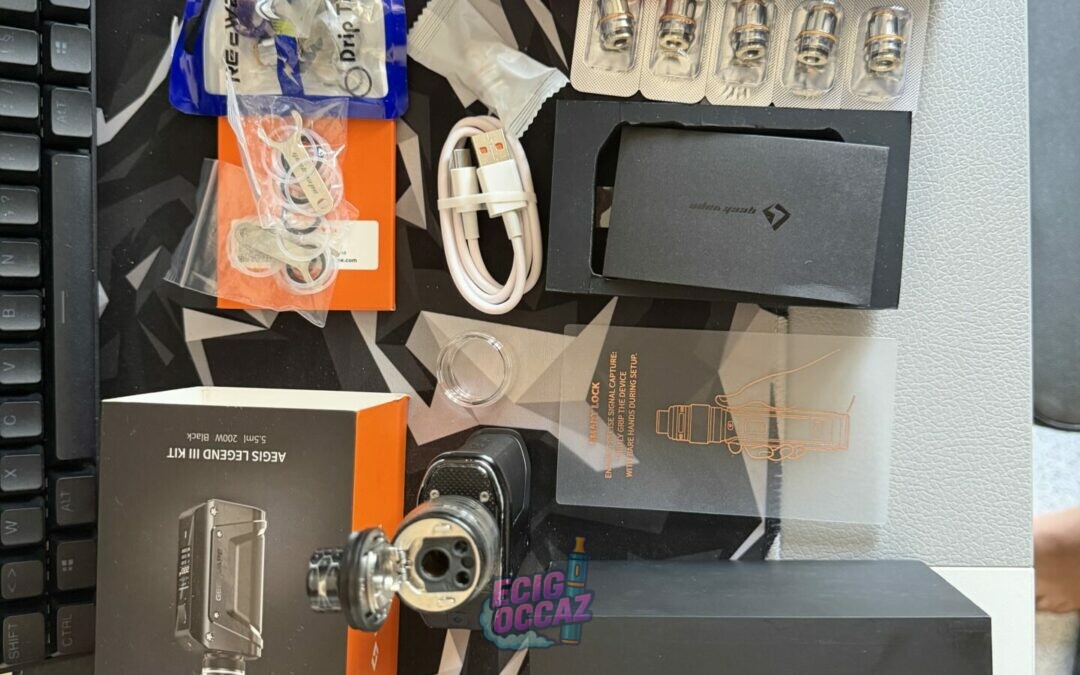 Je vends une cigarette électronique GeekVape Aegis Legend 3, en excellent état de fonctionnement, vendue avec sa boîte et de nombreux accessoires.