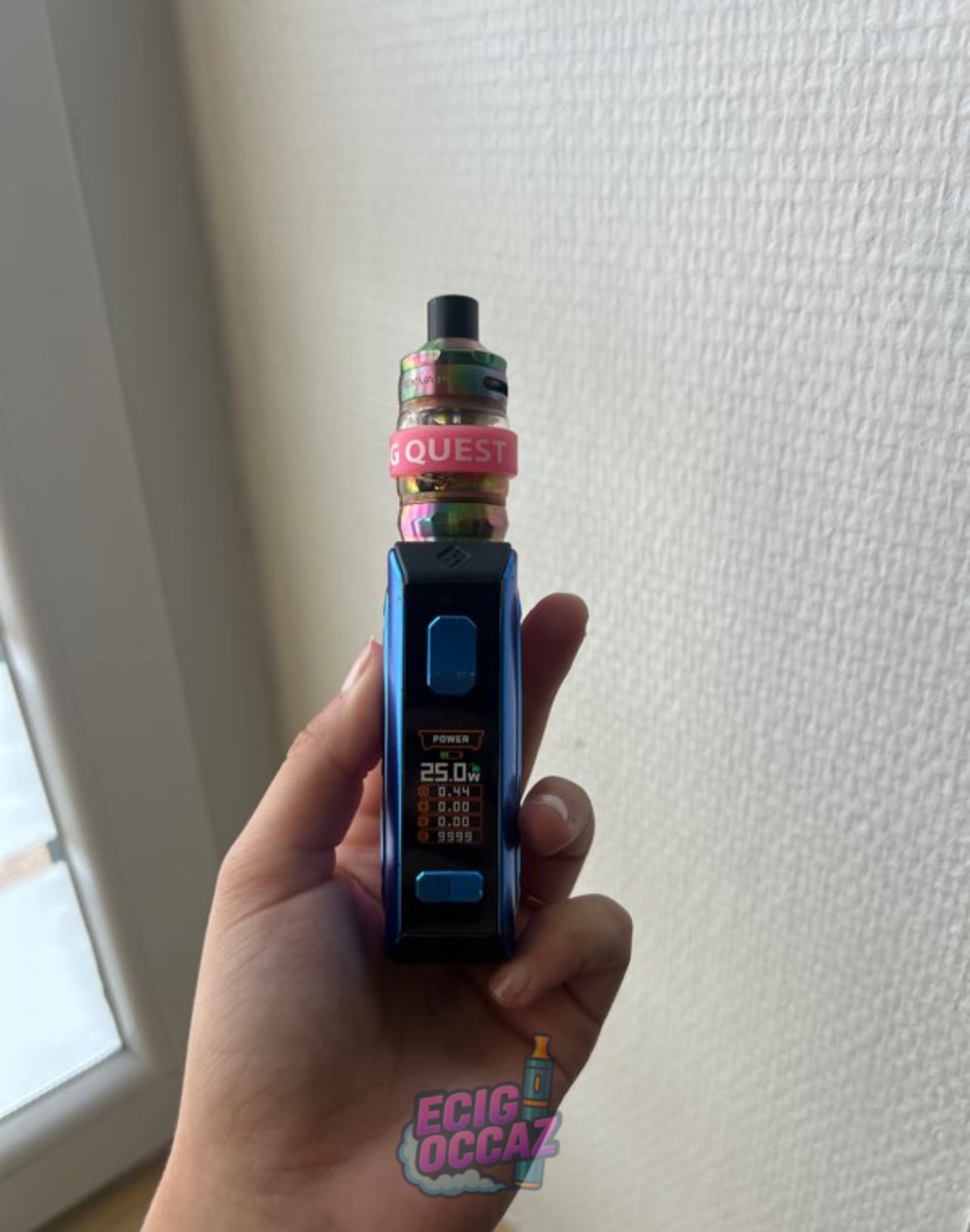 Servit pendant environ 3 mois, bon état, chargeur et boîte comprise avec, va de vape et résistance de 25-35 Watts,