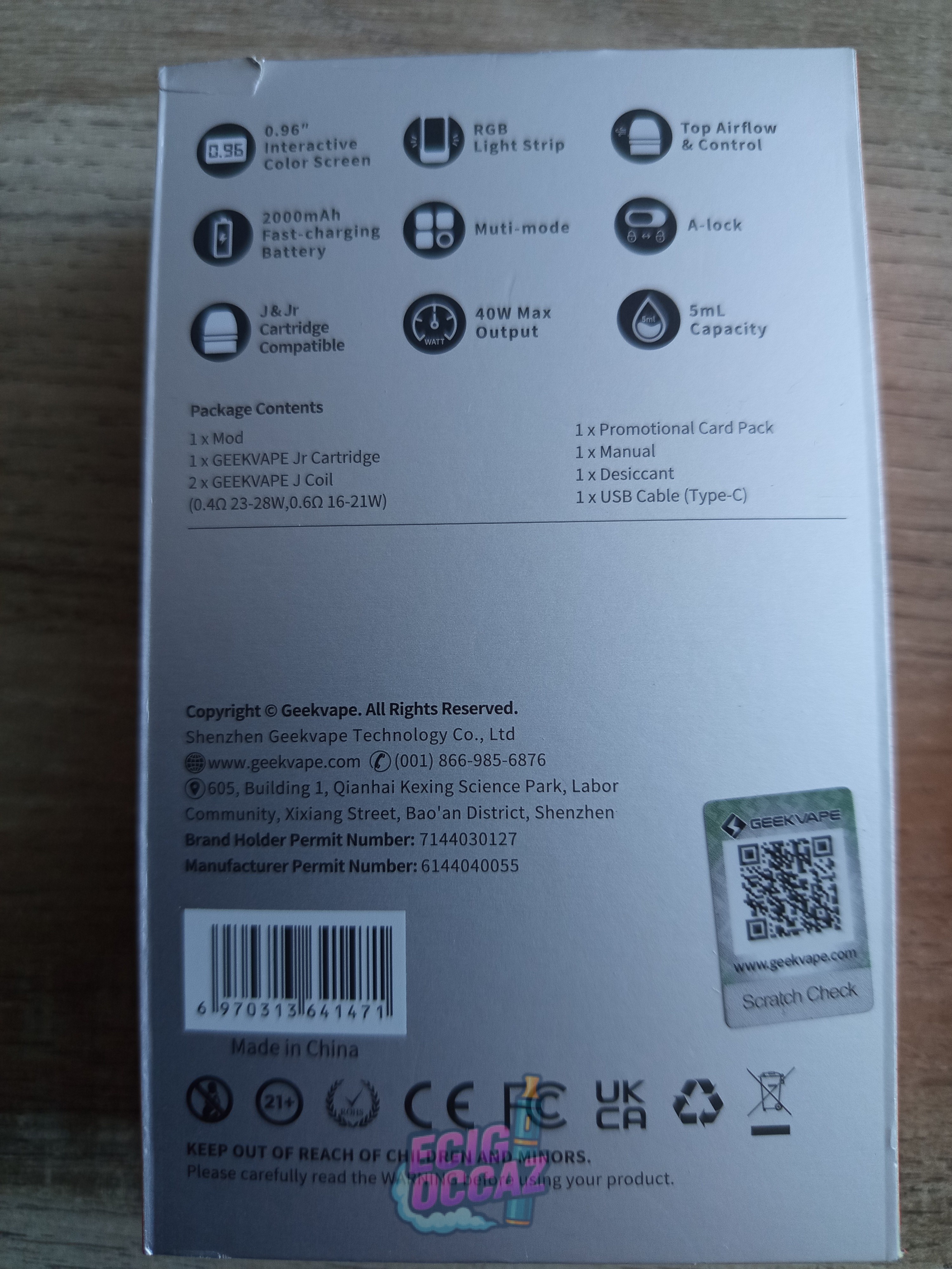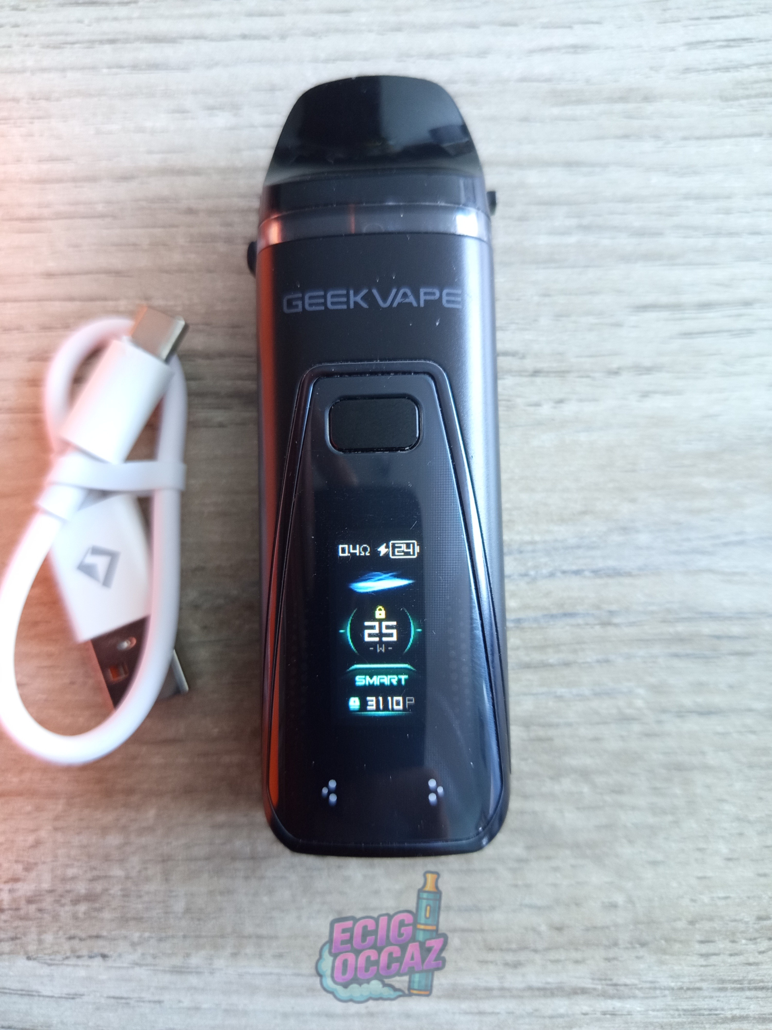 Avec une batterie rechargeable de 2000 mAh et une puissance de 40 watts, le pod Digi Pro dispense une vape qui passe de l’inhalation semi-directe à l’inhalation indirecte. Ce Digi Pro est un concentré de nouveautés technologiques signées Geekvape avec des modes de vape utiles et simples à maîtriser. Son écran est semi-tactile et aussi équipé de LED RGB autour d’un écran couleur de 0.96 « . La cartouche JR bénéficie d’un nouveau système d’aération. La cartouche JR offre une contenance de 5 ml. Le chipset du pod Digi Pro offre un temps de réaction minimum pour déclencher l’inhalation automatiquement dès l’aspiration. Tous les réglages sont accessibles avec un bouton principal qui s’associe aux deux boutons de l’écran tactile. Le Digi Pro a également un interrupteur discret placé sous le pod.