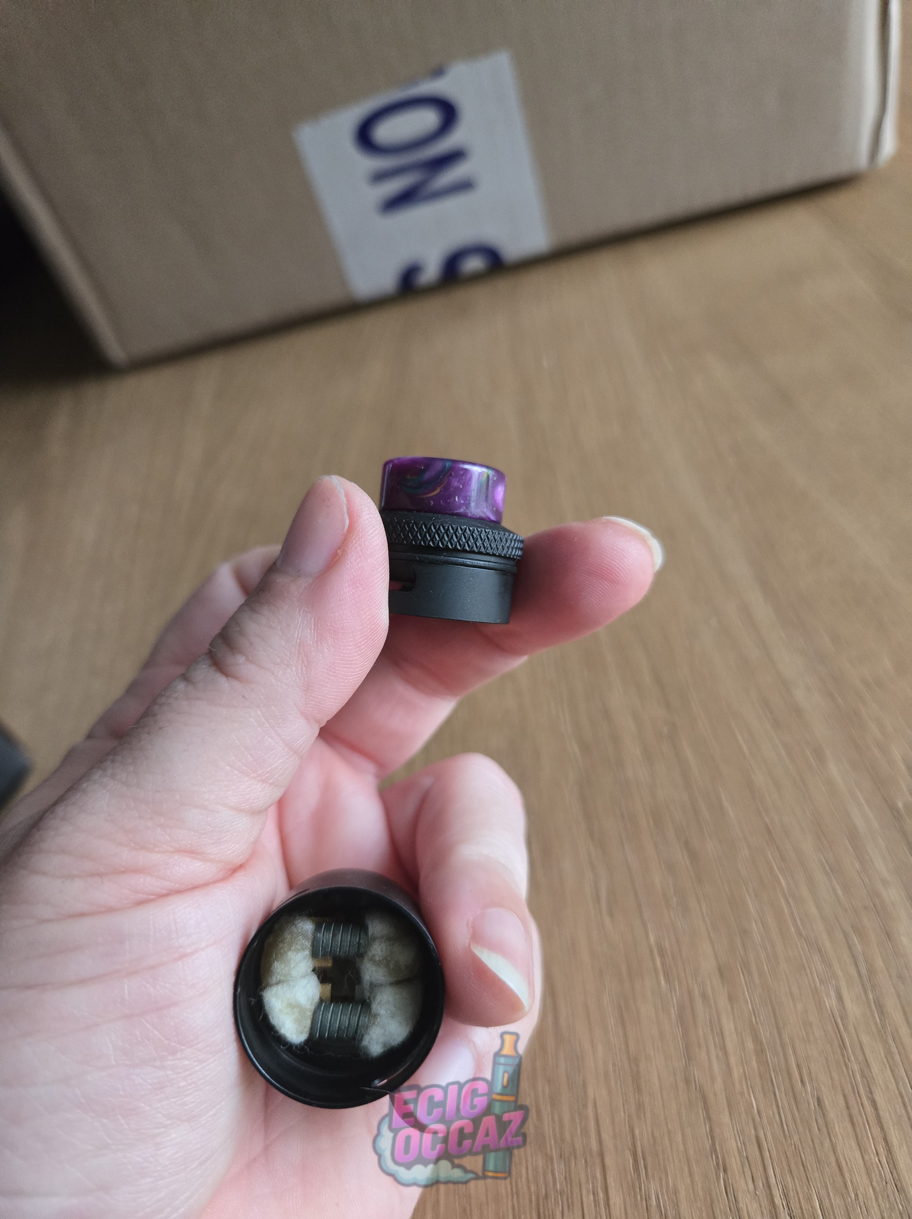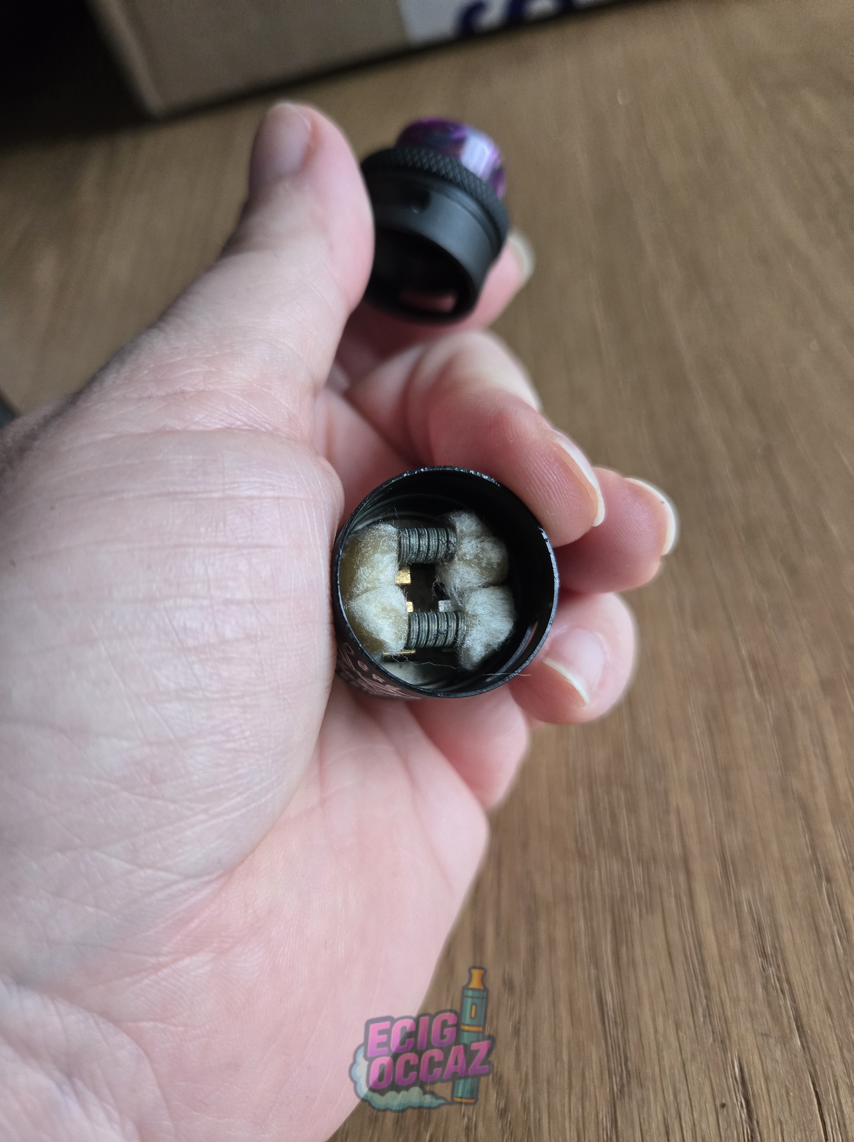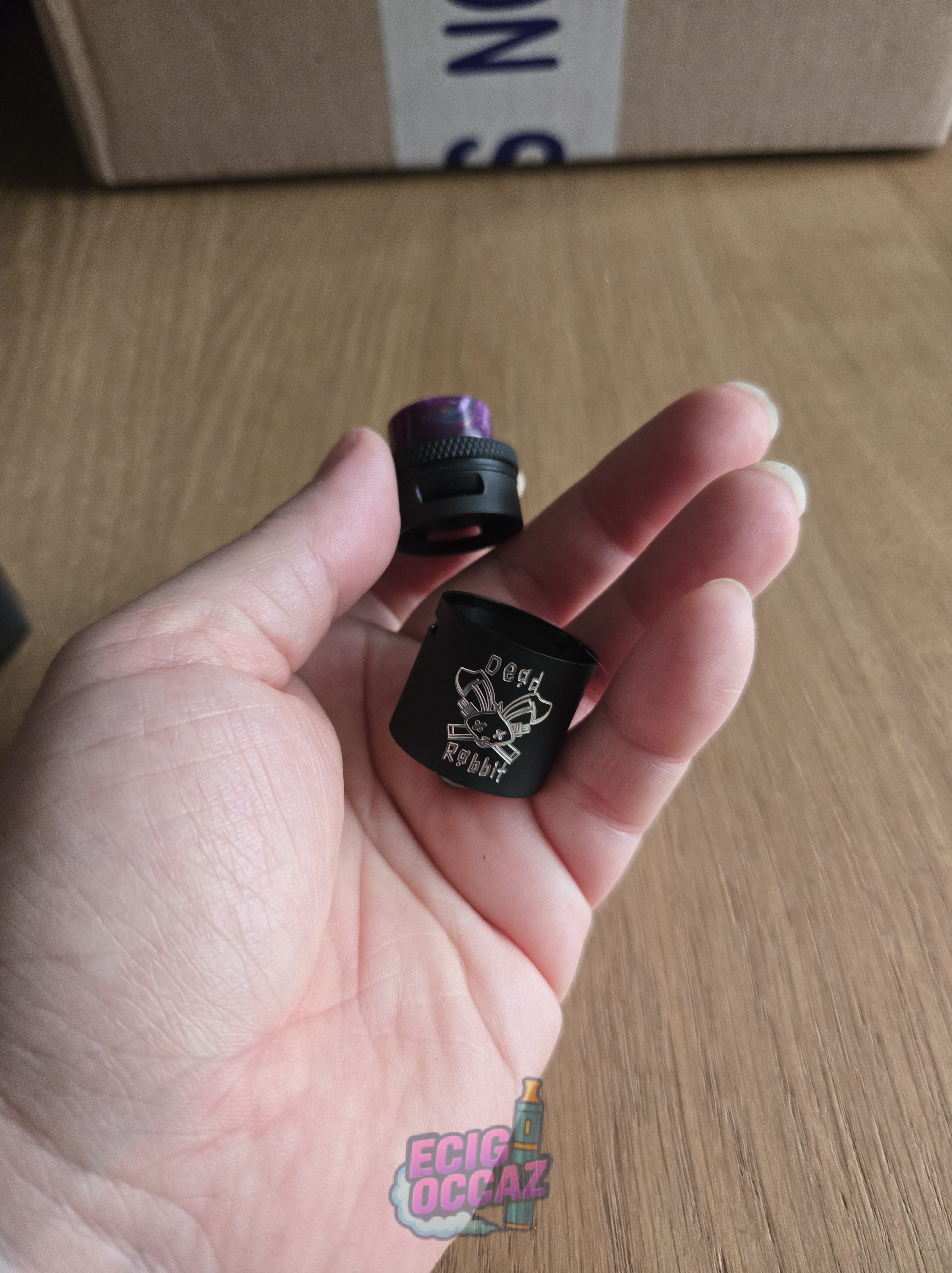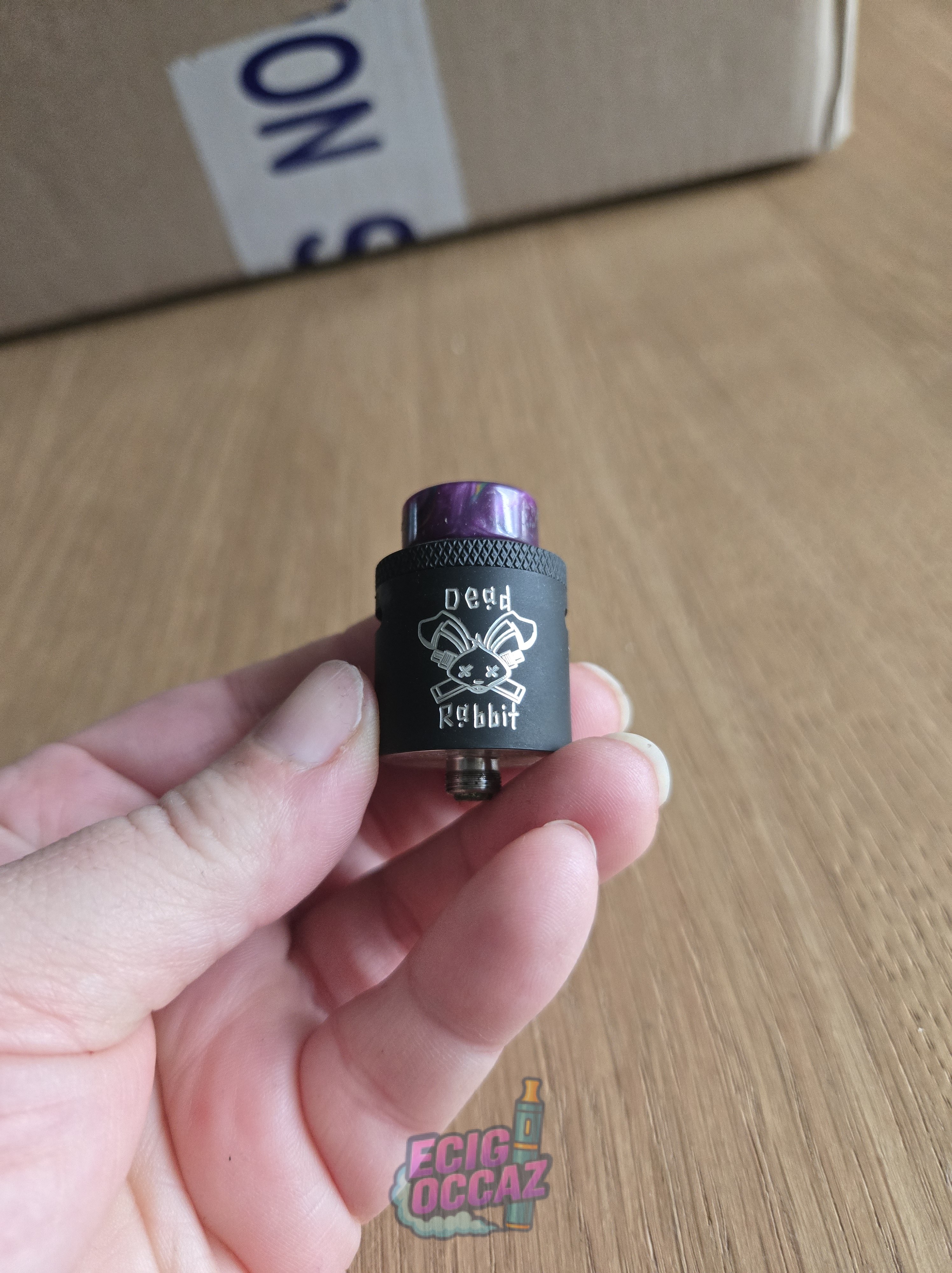 Dripper Dead Rabbit V3 RDA Hellvape, noir mat et drip tip violet (non d’origine)
