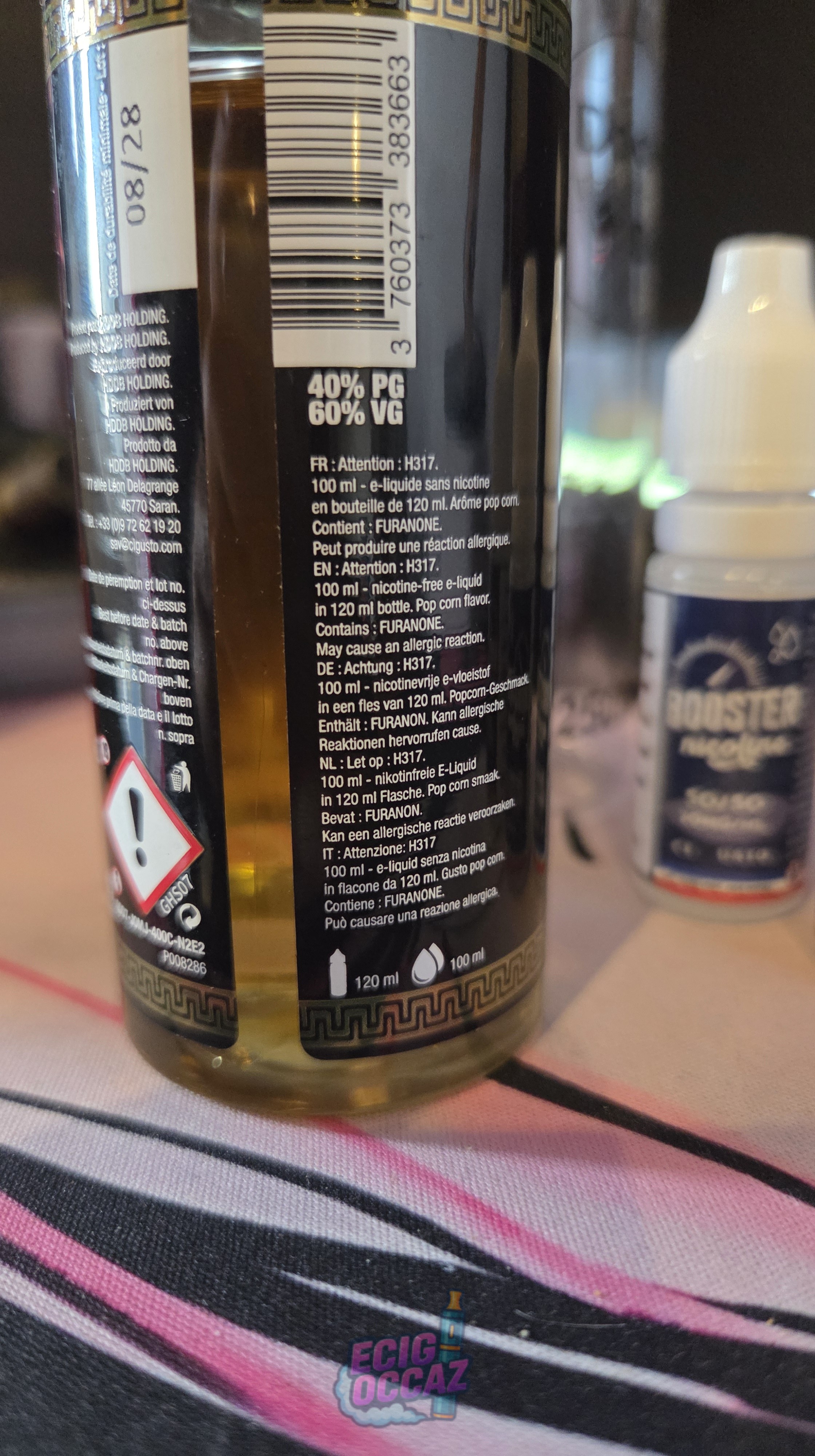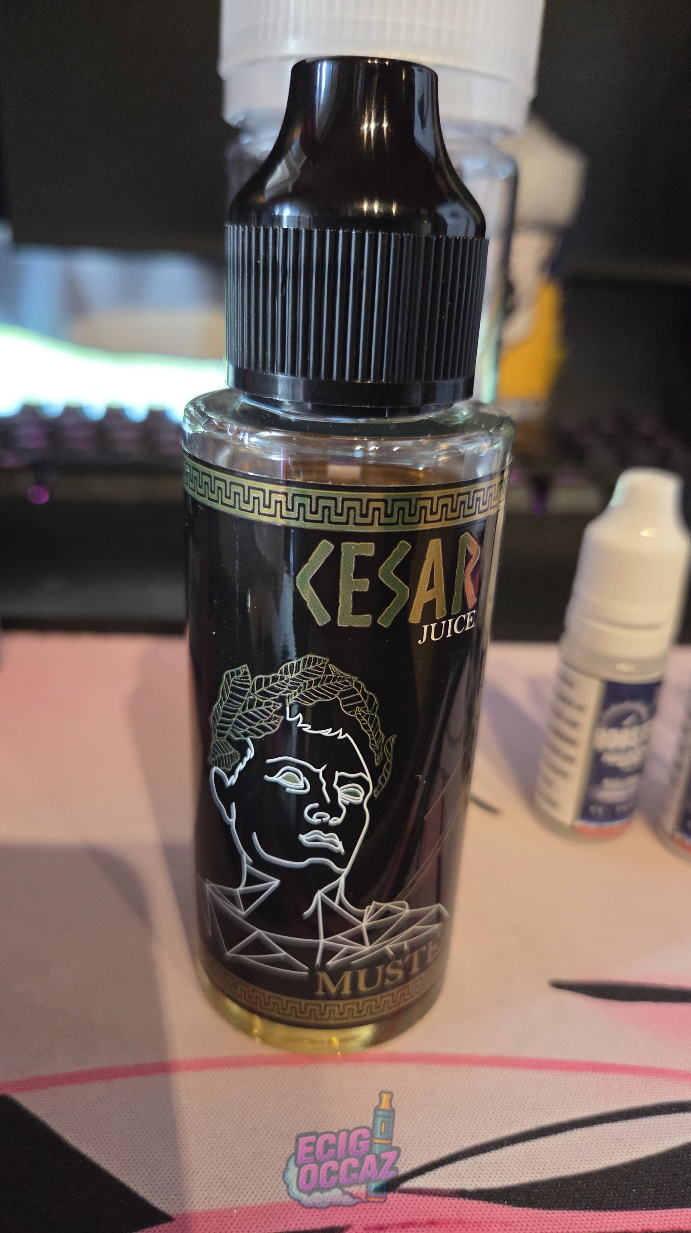 Vente d’un e-liquid 40% pg 60% vg césar Juice mustea goût pop corn. 100ml + 3 booster nicotine 50 / 50