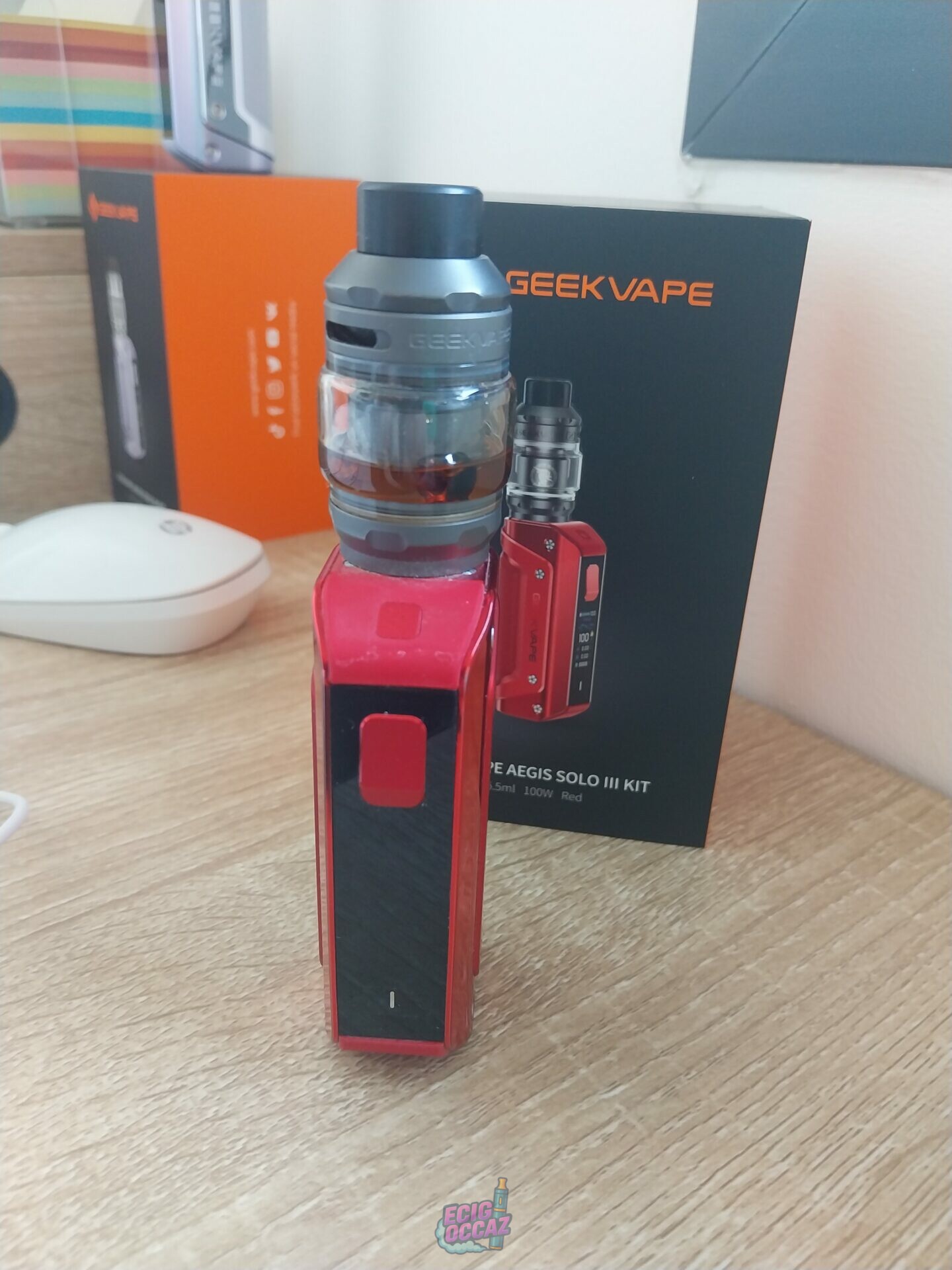 On aperçois quelque imperfection dans la couleur rouge car il la souvent mis dans sa poche de jean, marche très bien, sens bien les saveurs. Avec chargeur double comme sur la photo.