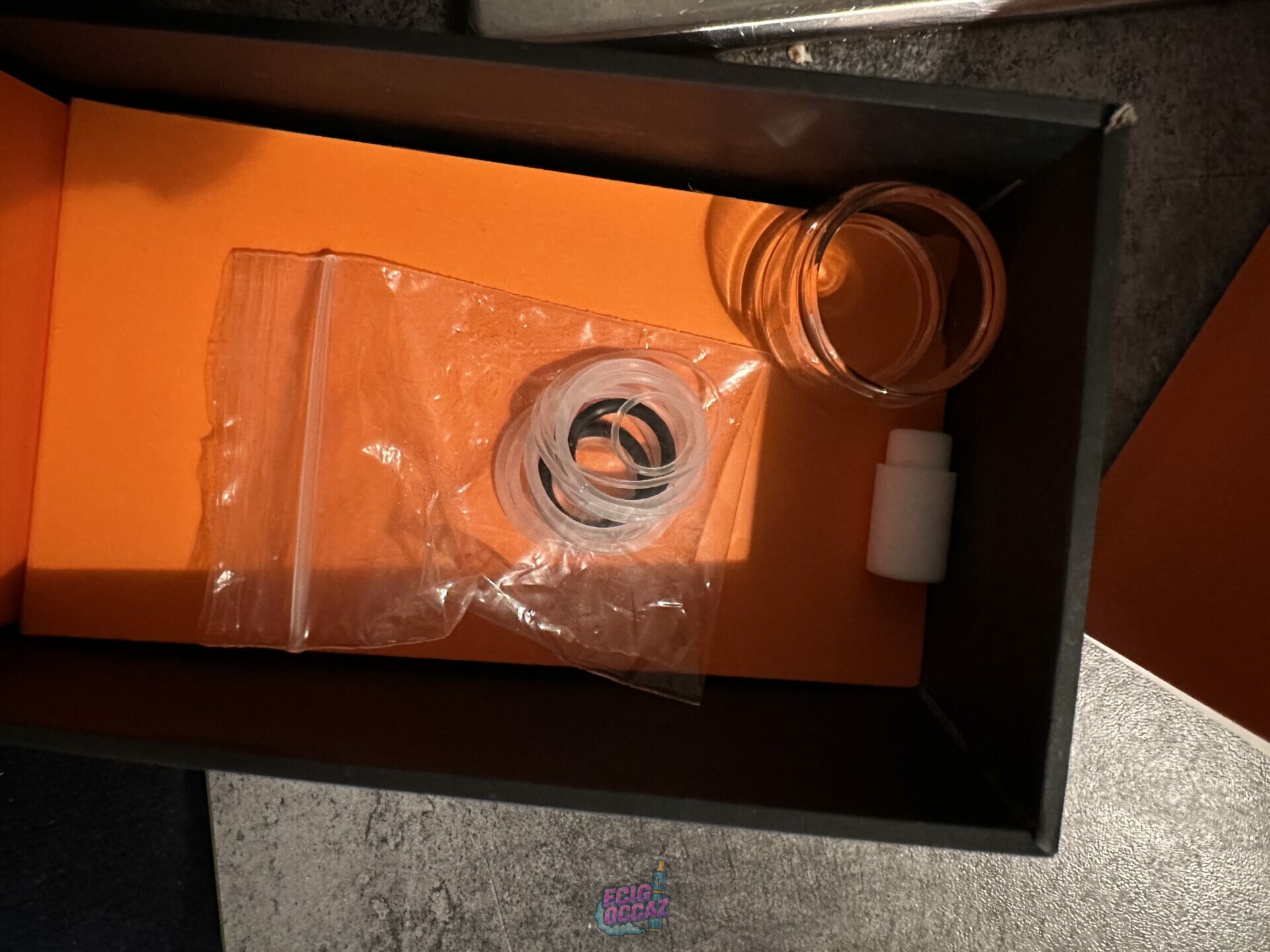 J’ai acheté cette cigarette électronique il y a moins d’un mois, mais je ne la veux plus car j’en ai acheté une autre qui me plaît mieux. Je l’ai utilisée quelques fois, mais j’ai perdu l’embout. Je la vends avec un liquide rempli à moitié. J’ai aussi la boîte, avec un verre de rechange à l’intérieur, et une résistance 0.4Ω déjà installée dans la cigarette électronique.