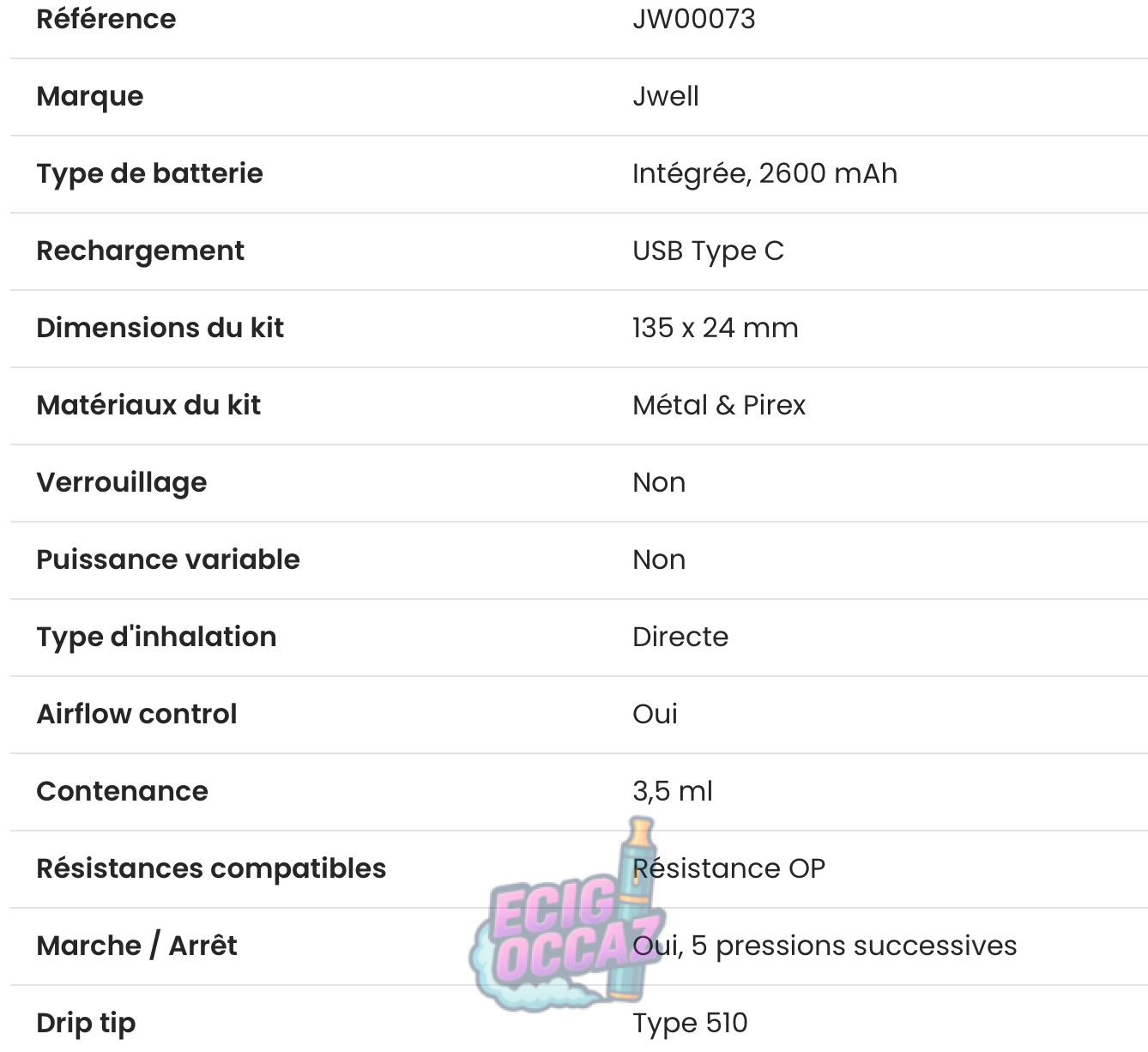 Jwell Opera Mod, design élégant, excellente performance. Idéal pour une vape de qualité.