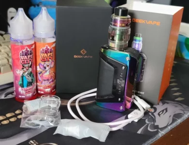 Je vends ce kit Aegis Legend 3 de la marque Geekvape dans sa boîte d’origine. Il est vendu avec deux liquides de la marque Vape City de 50ml (1 est neuf et l’autre as été ouvert pour tester le goût puis plus jamais utilisé), ainsi qu’un deuxième accu non fourni dans le kit d’origine pour faire fonctionner le tout.