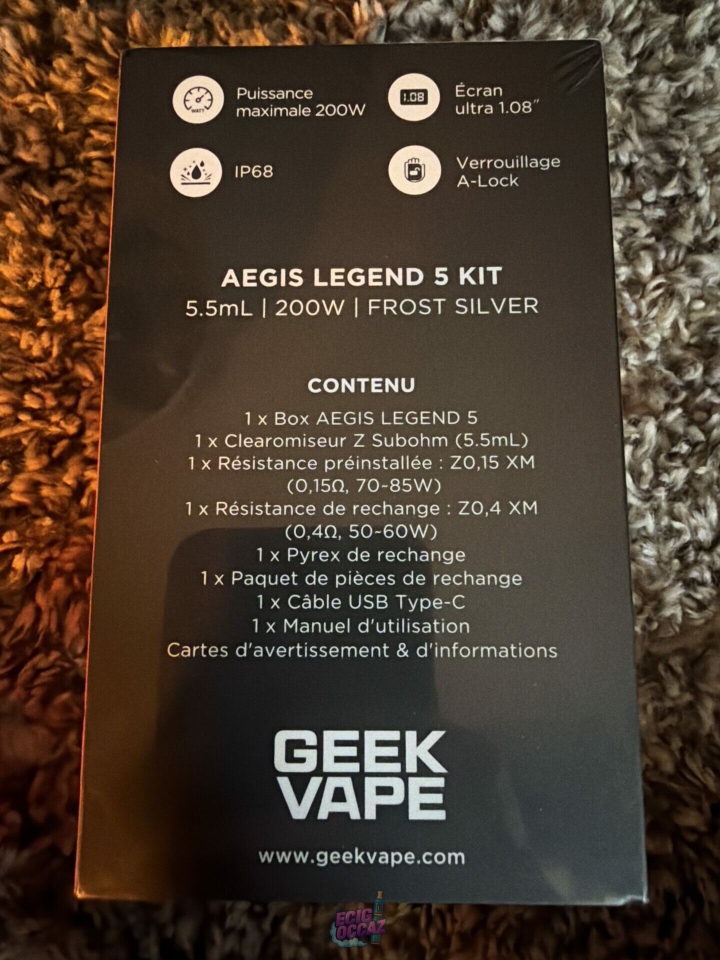 Kit Aegis Legend 5 Geekvape couleur Frost Silver, neuf sous blister.