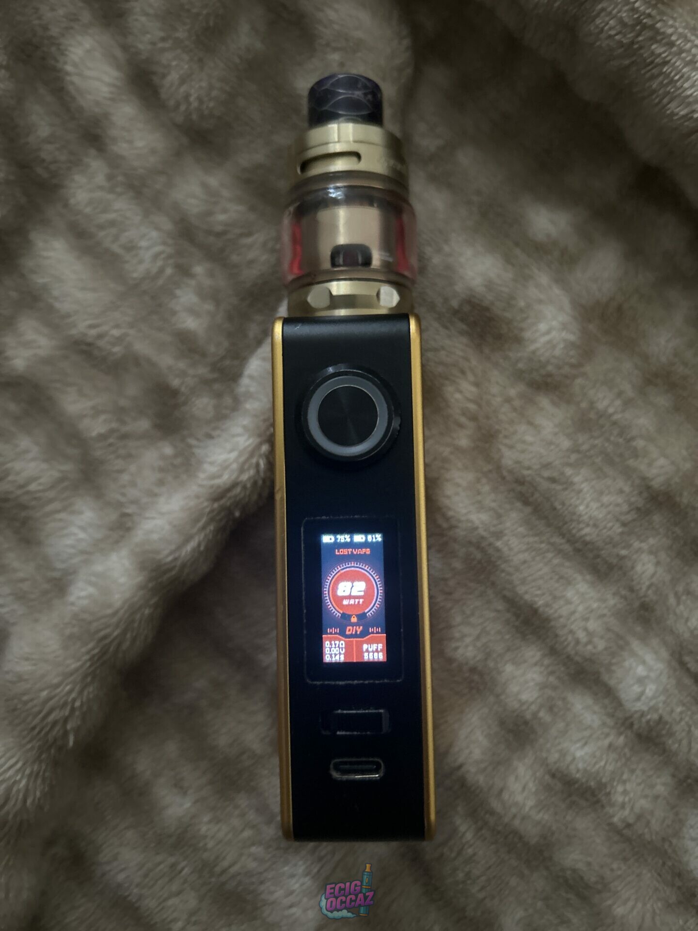 Je vends cette cigarette électronique haut de gamme de la marque Lost Vape, modèle Centaurus M200 en version Golden Knight, un design premium avec finitions gravées uniques et look ultra stylé.