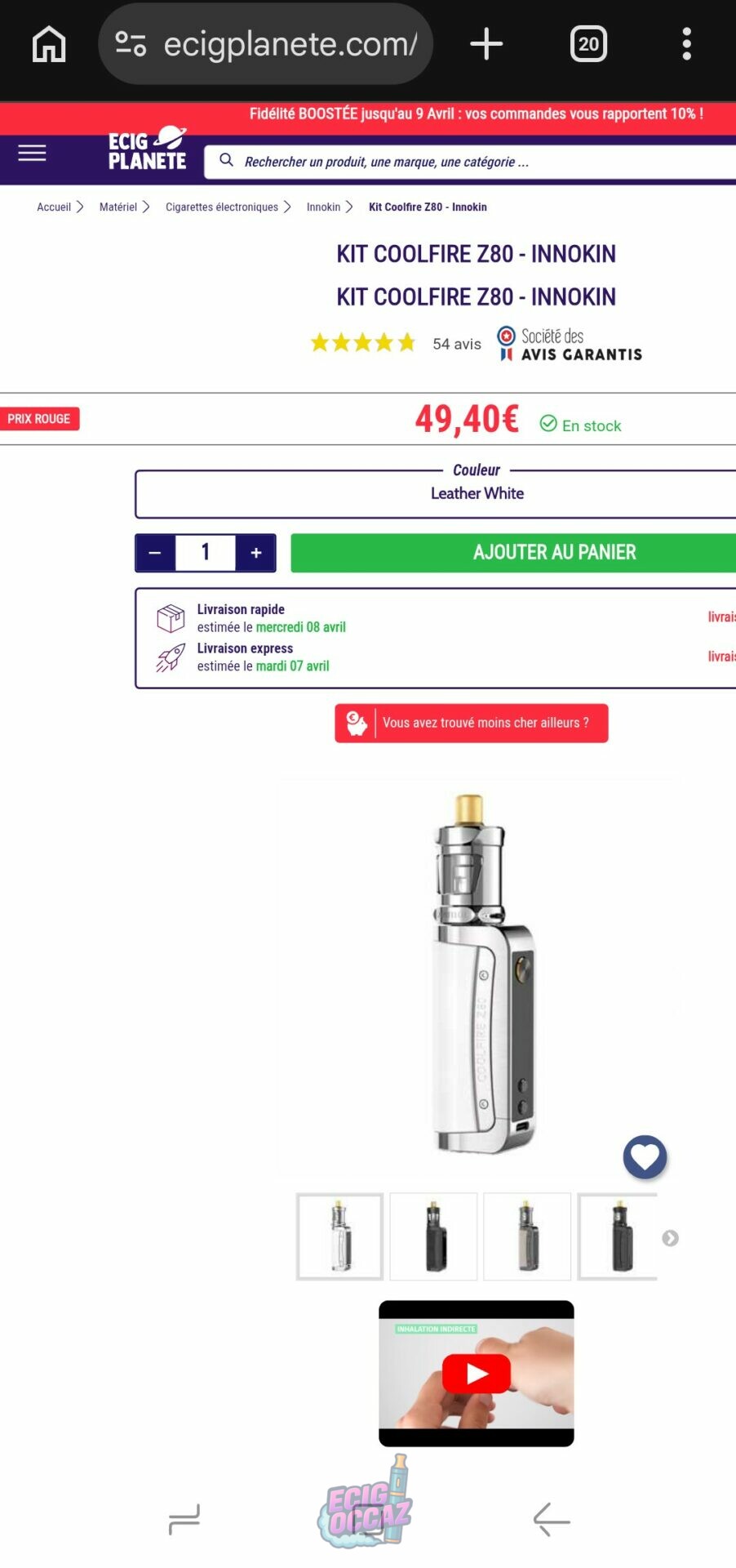 Je mets en vente ce Kit Coolfire Z80 Zenith 2 – Innokin en bon état, fonctionne très bien. ✅
