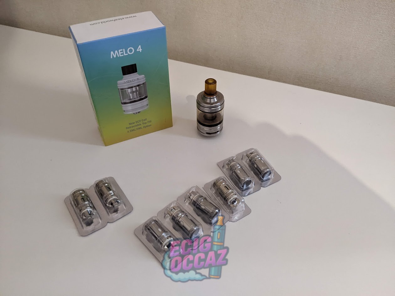Clearomiseur Eleaf Melo 4 : Un réservoir simple à vivre avec remplissage par le haut (top-cap coulissant). Excellent rendu de vapeur.