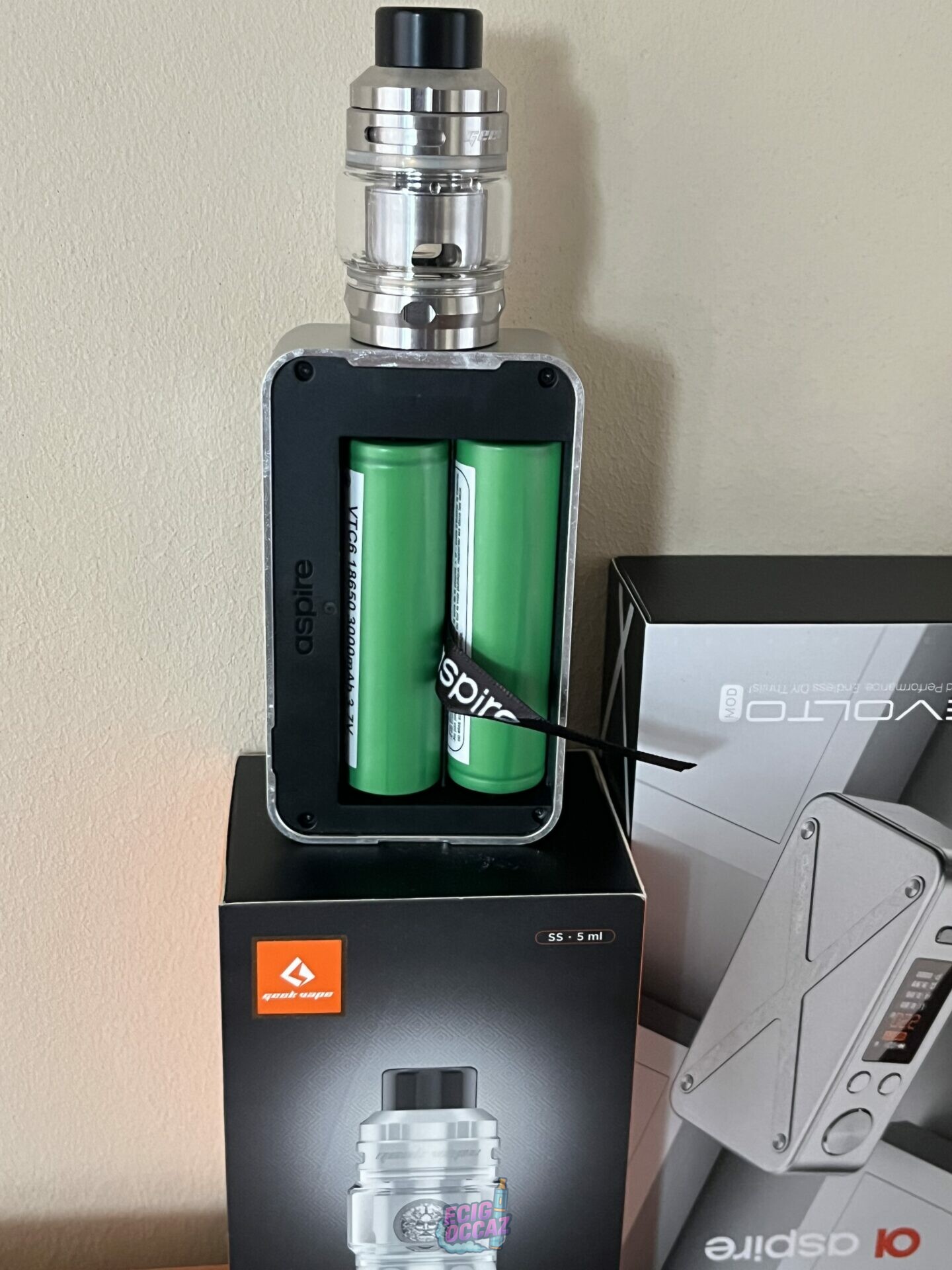 Kit en parfait état prêt a l’emploi, acheté neuve il y moins de 6 mois je ne l’ai pas beaucoup utilisée, nettoyée intégralement, je fourni du e-liquide, les deux accus d’origine et 5-6 résistances