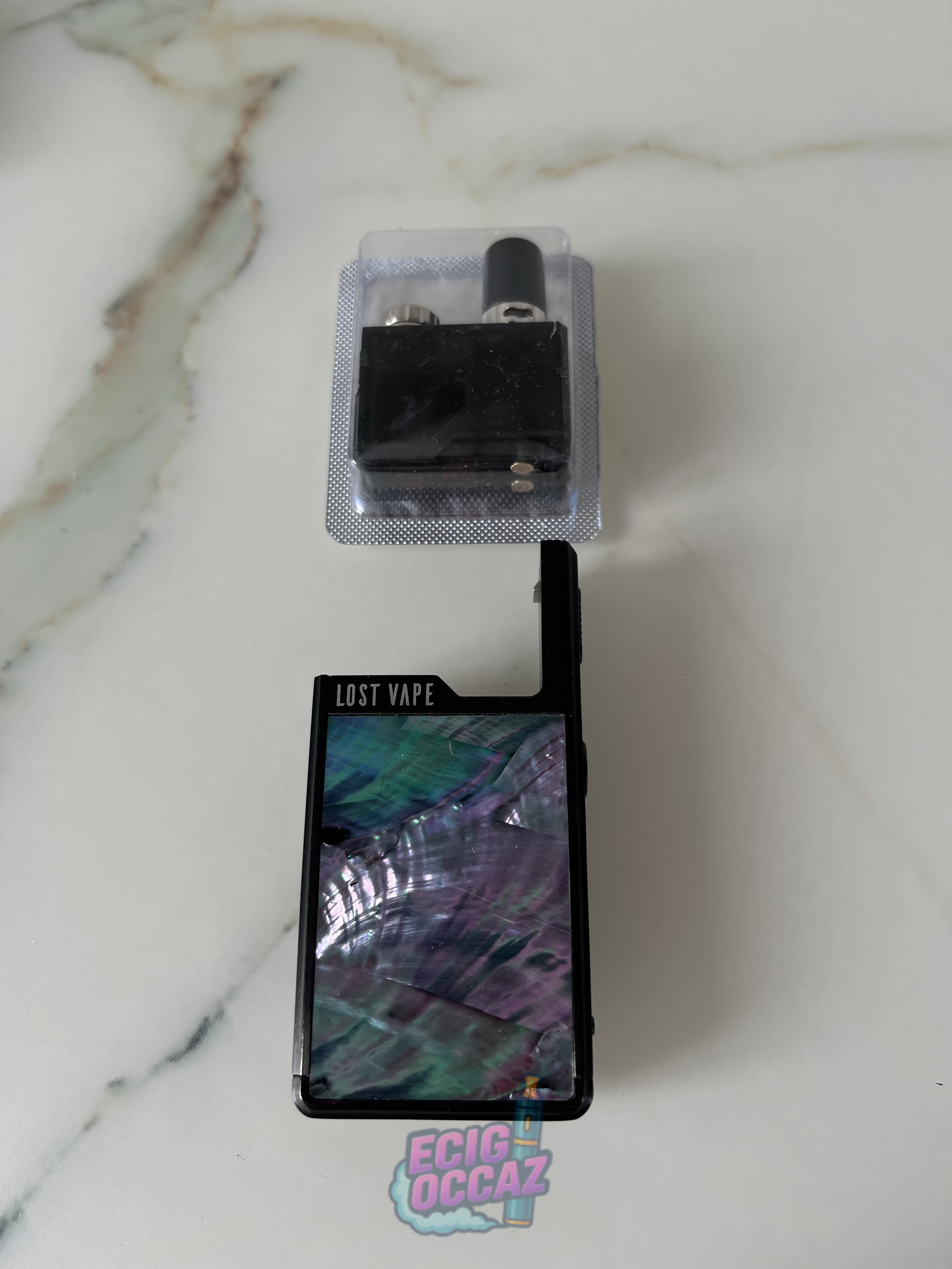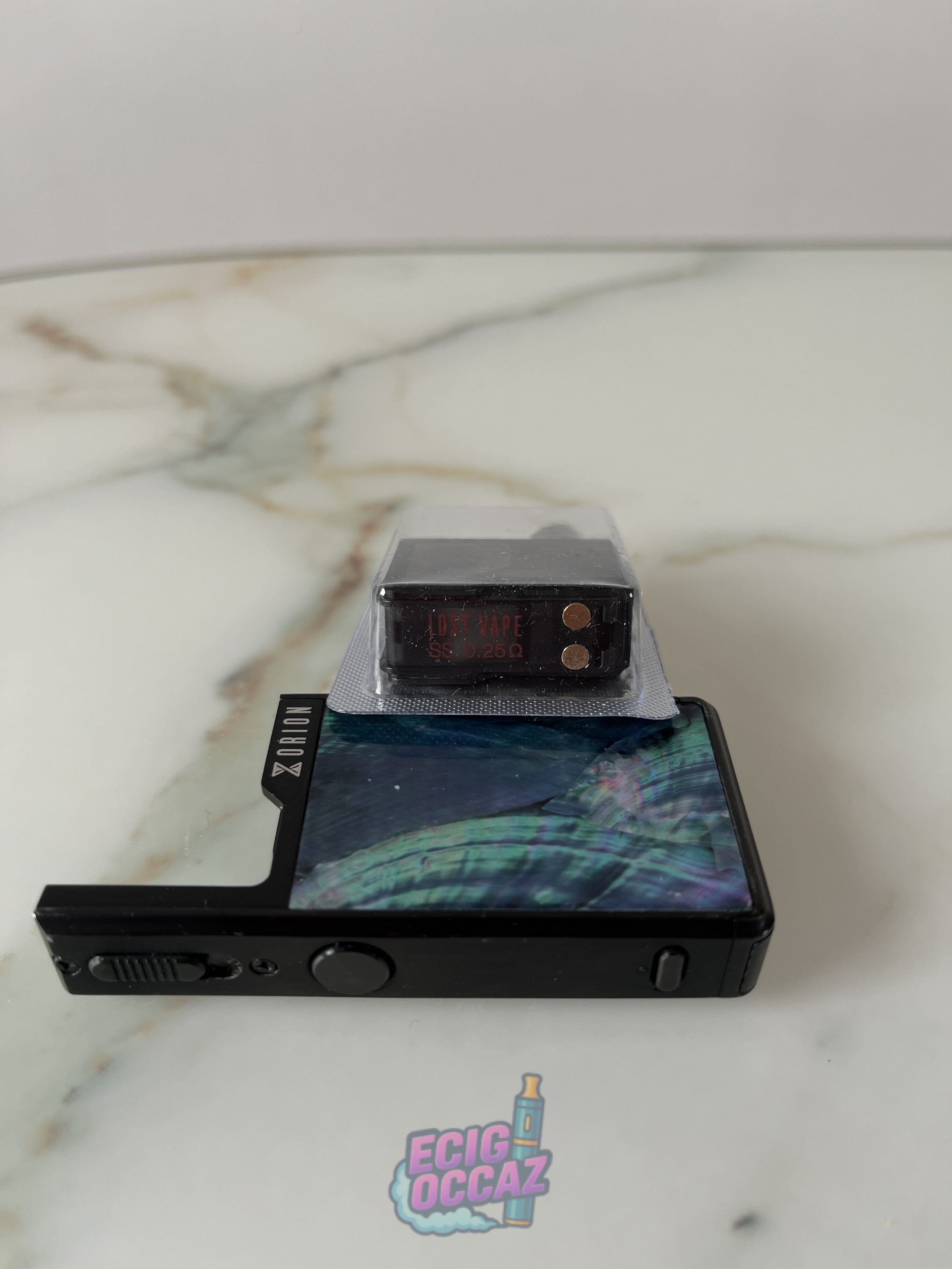 Kit Pod Orion nacre de la marque Lost Vape. Vendu avec câble de chargement et un pod 0,5 ohm neuf.