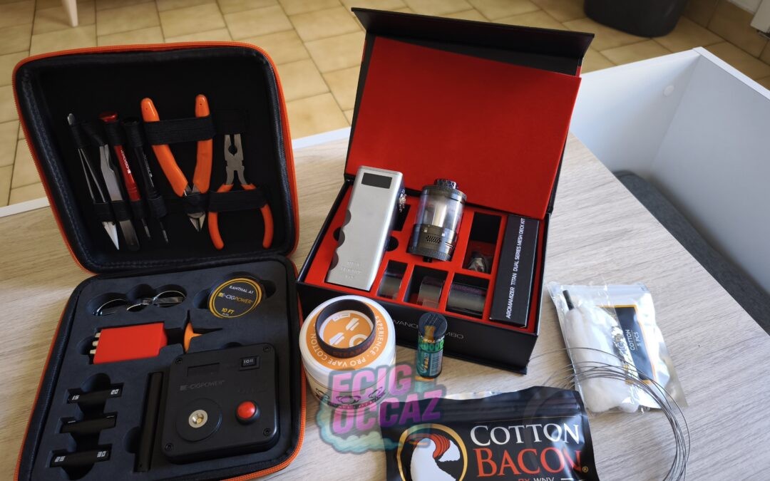 Kit Titan Advanced Combo Steam Cave avec trousse pour créé ses propres coil fourni avec coton et coil déjà prêt et une petite bobine pour en faire servi que deux trois fois en rupture de Stock partout.