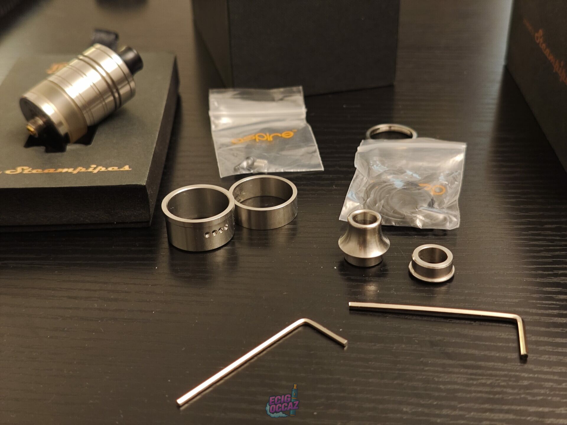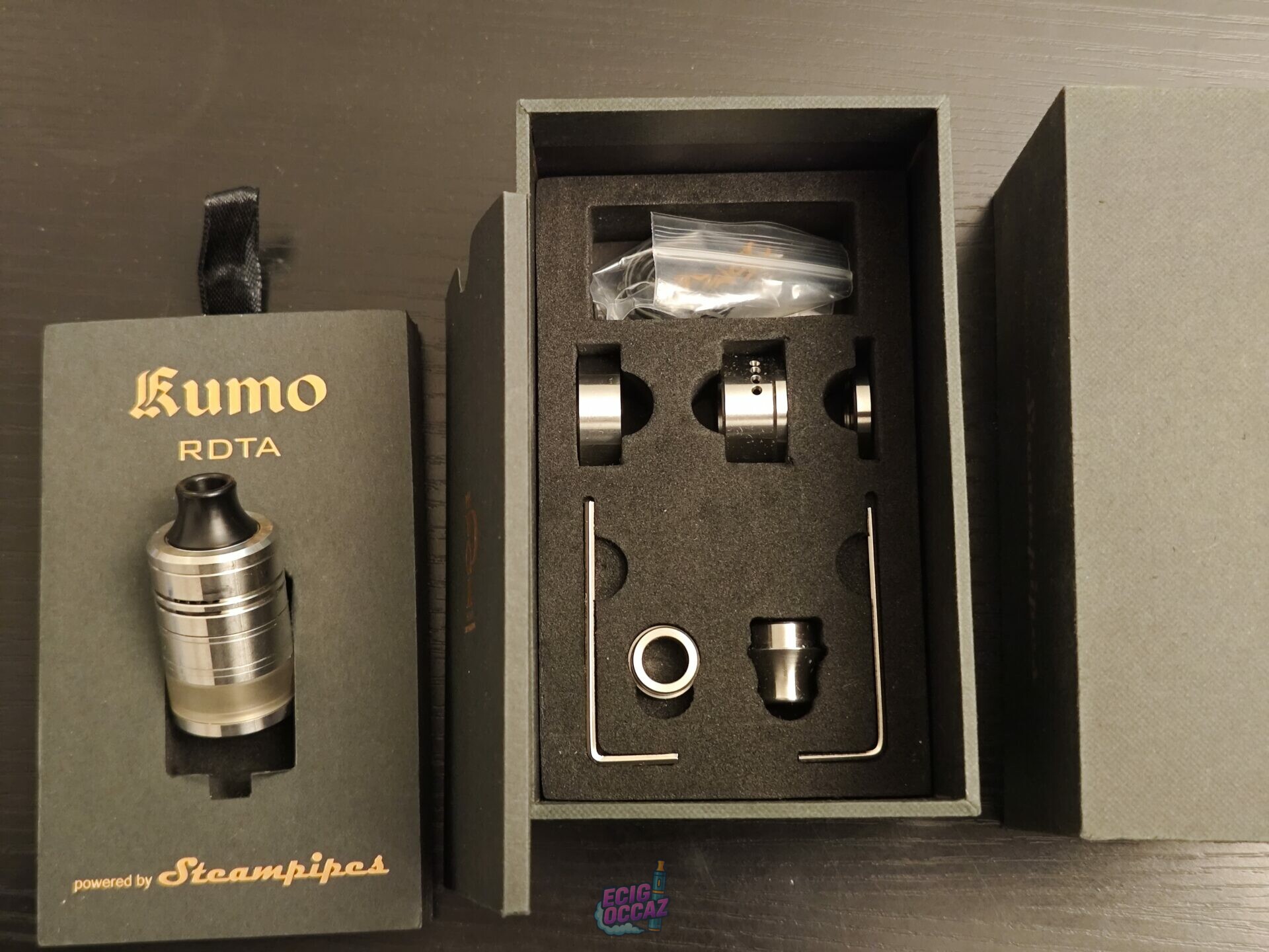 Vends atomiseur reconstructible Kumo RDTA Aspire x Steampipes, complet avec boîte d’origine et tous les accessoires.
