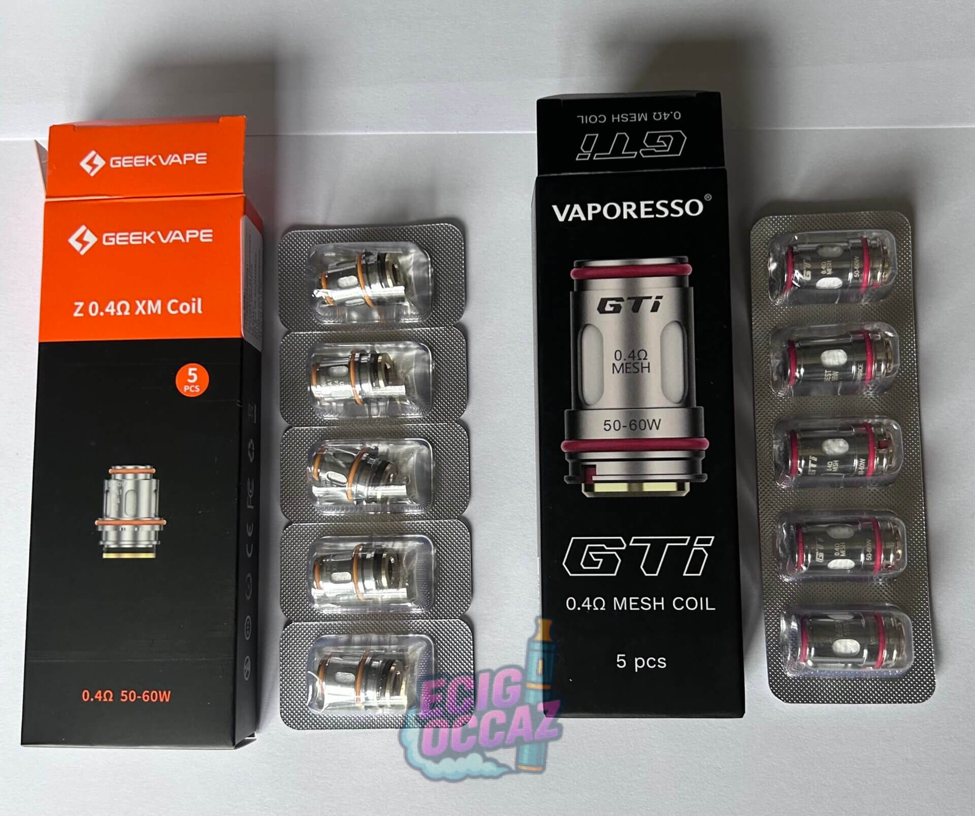 Les résistances sont disponibles aussi pour 7€ les 5 pour Z séries GeekVape 0,4 Ohms. Ou 8€ les 5 pour GTI Vaporesso 0,4 Ohms.