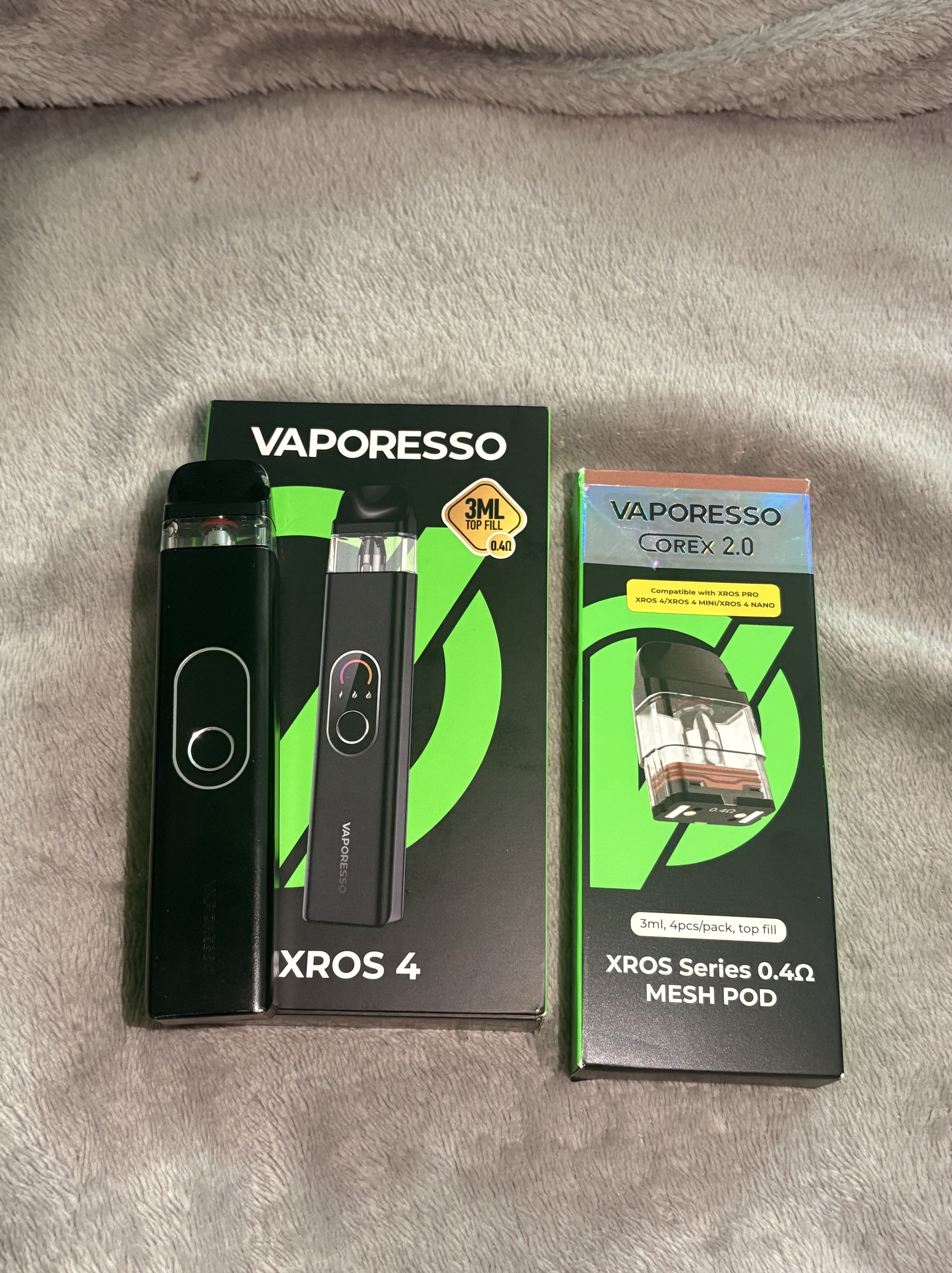Le lot comprend aussi une boîte neuve de 4 pods Vaporesso XROS Series 0.4 Ω Mesh Pod (3 ml).