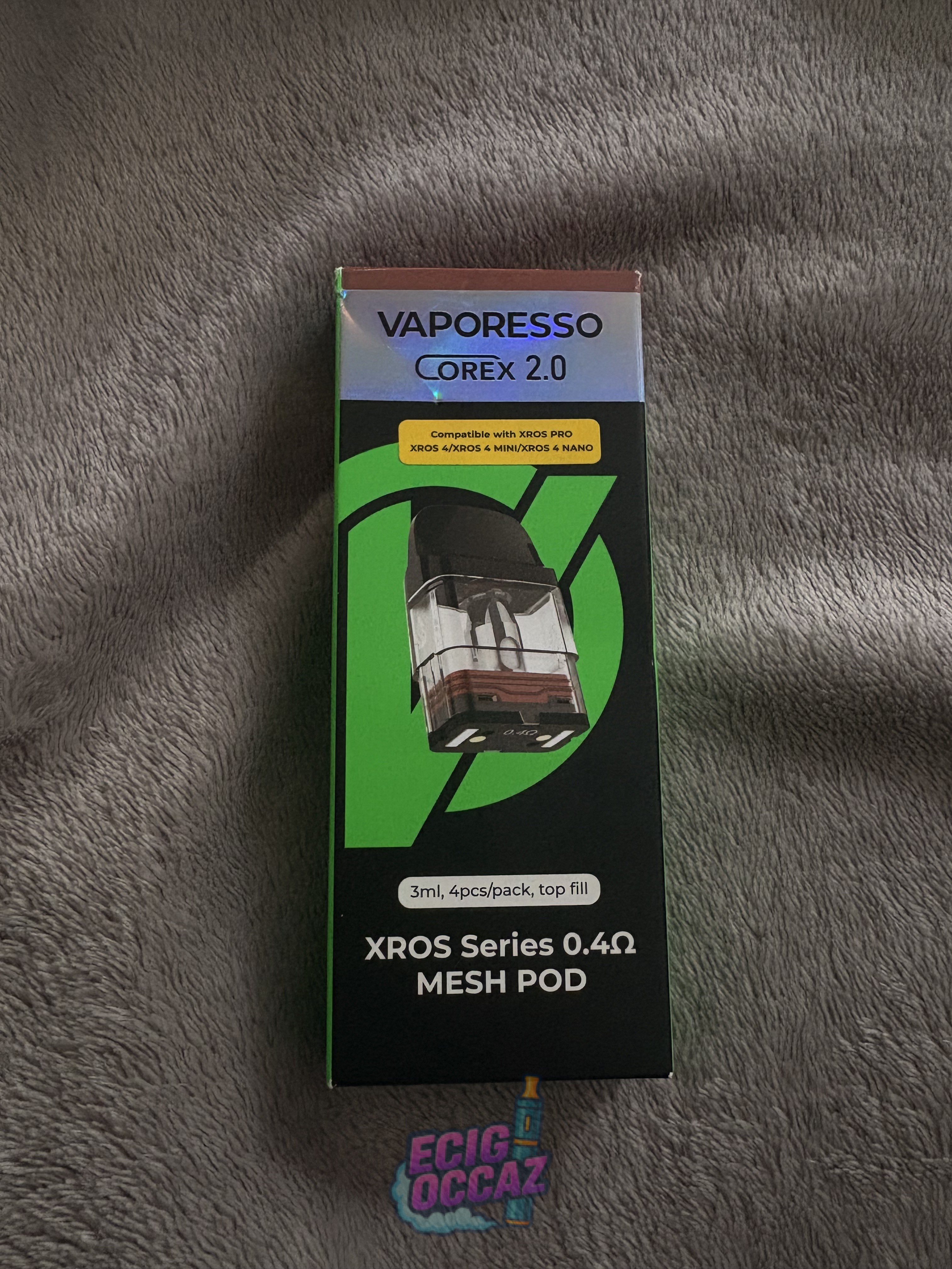 Le lot comprend aussi une boîte neuve de 4 pods Vaporesso XROS Series 0.4 Ω Mesh Pod (3 ml).
