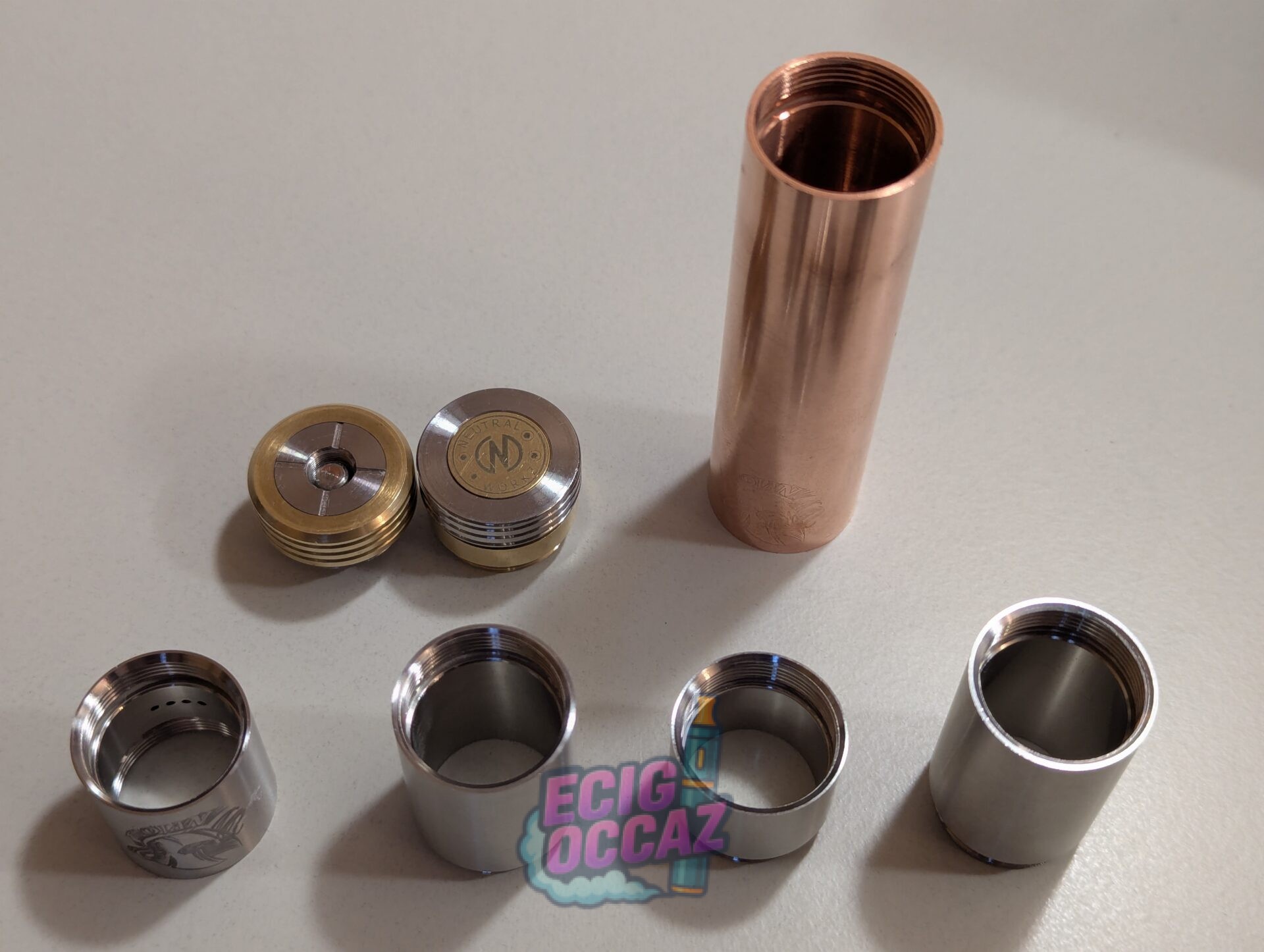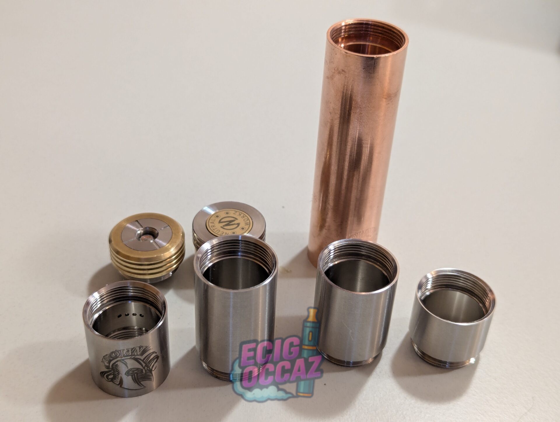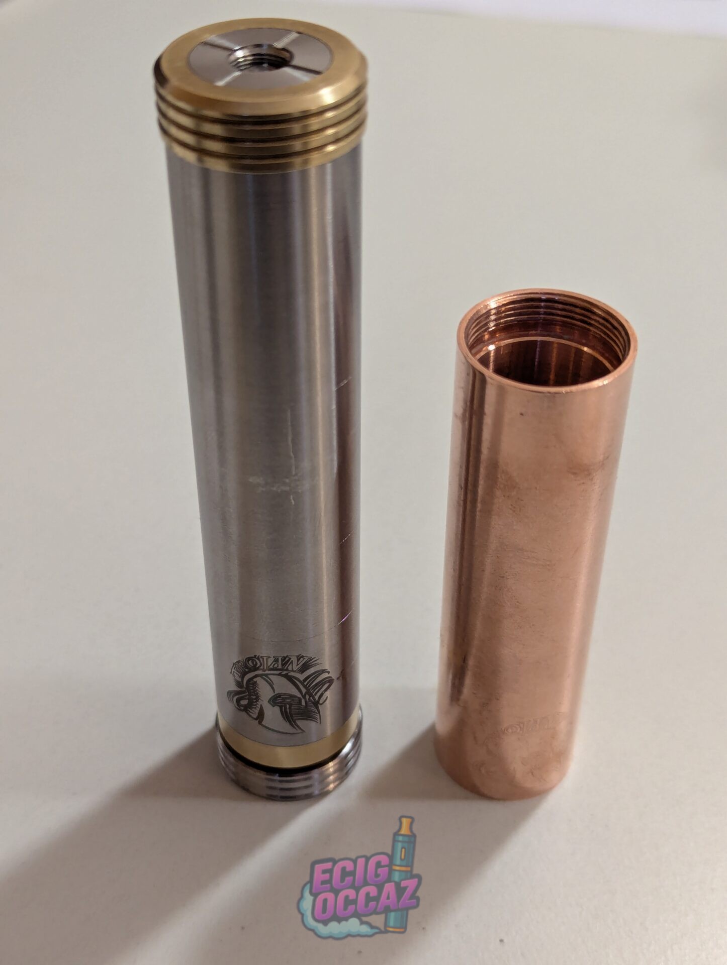 Vends mod mécanique Trojan by Neutral Workz, combo cuivre + acier inox, très belle pièce, lourde et de qualité, avec une excellente conductivité (Pin switch & atomiseur en cuivre plaqué argent !