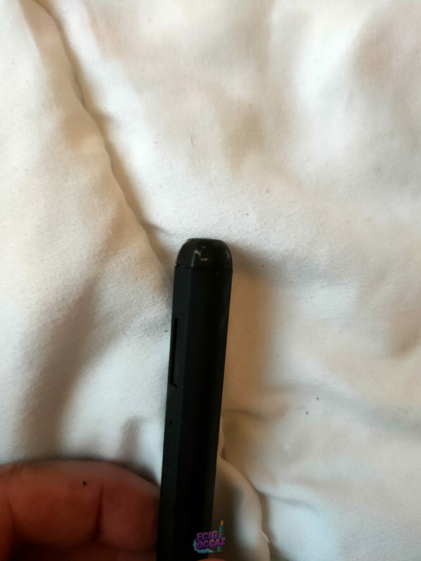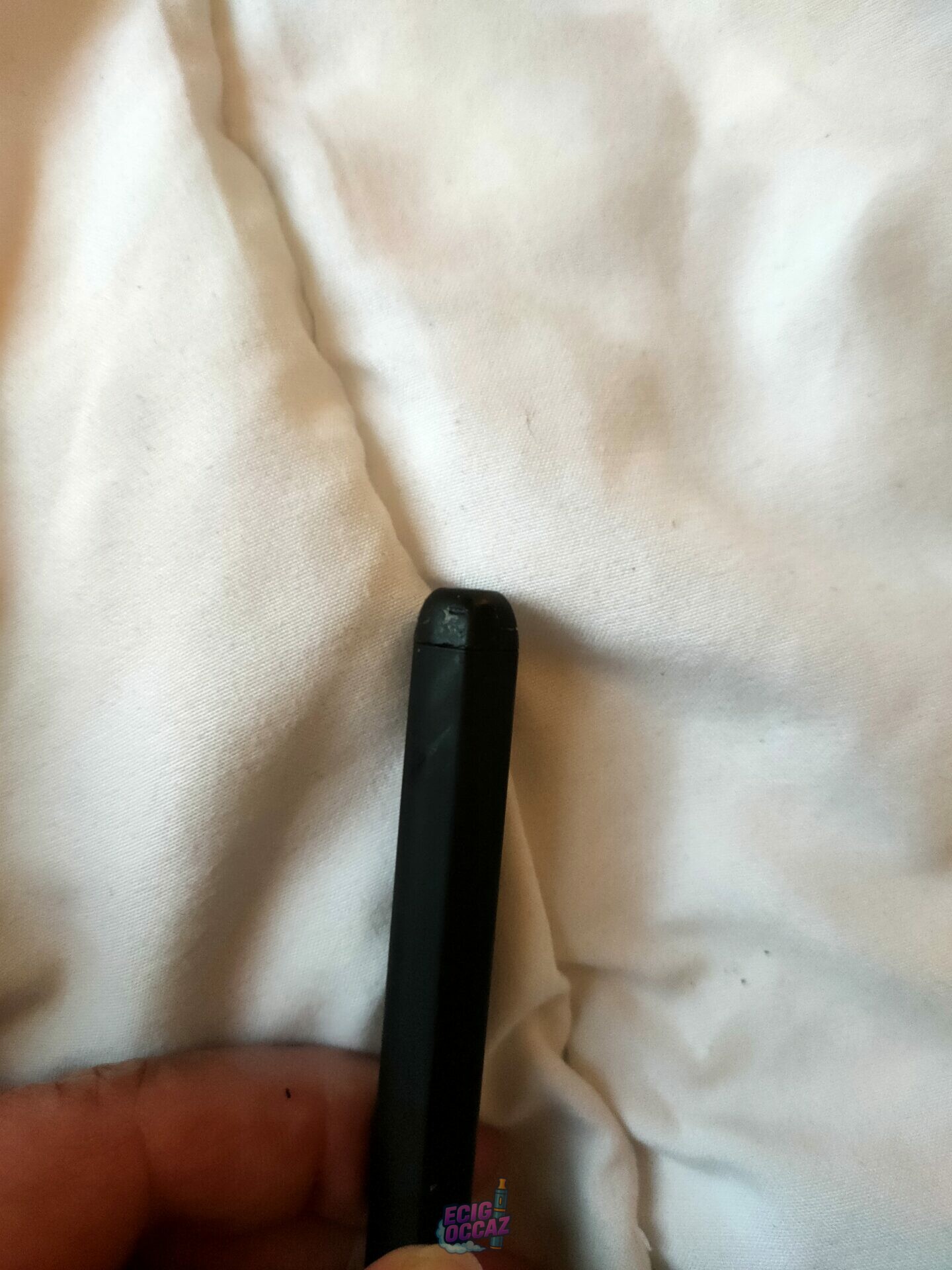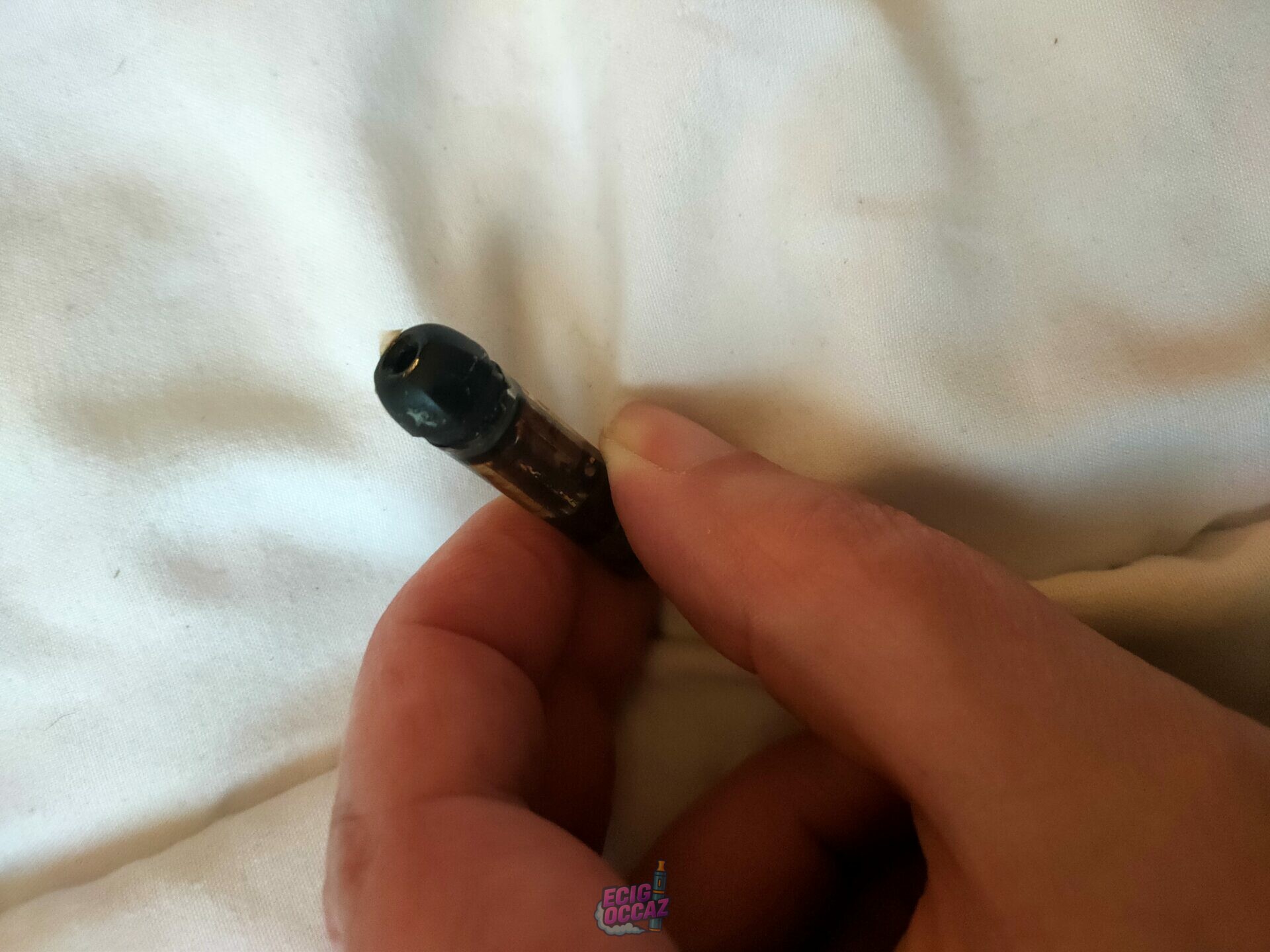 Déjà utilisée mais encore en très bon état. Quelques éraflures sur le capuchon de la cartouche que j’ai essayé de montrer sur photo : je n’arrivais pas à ouvrir facilement la cartouche et oui… j’ai utilisé mes dents.