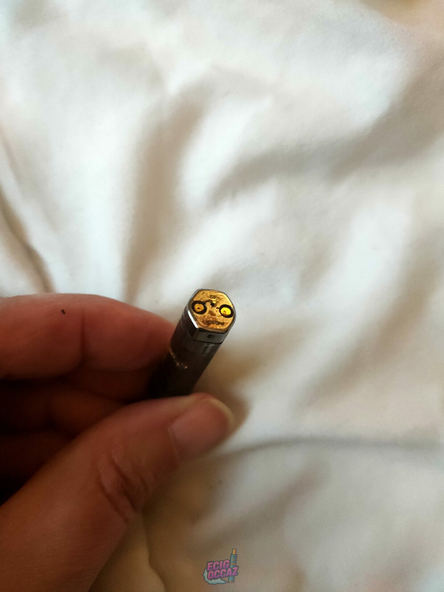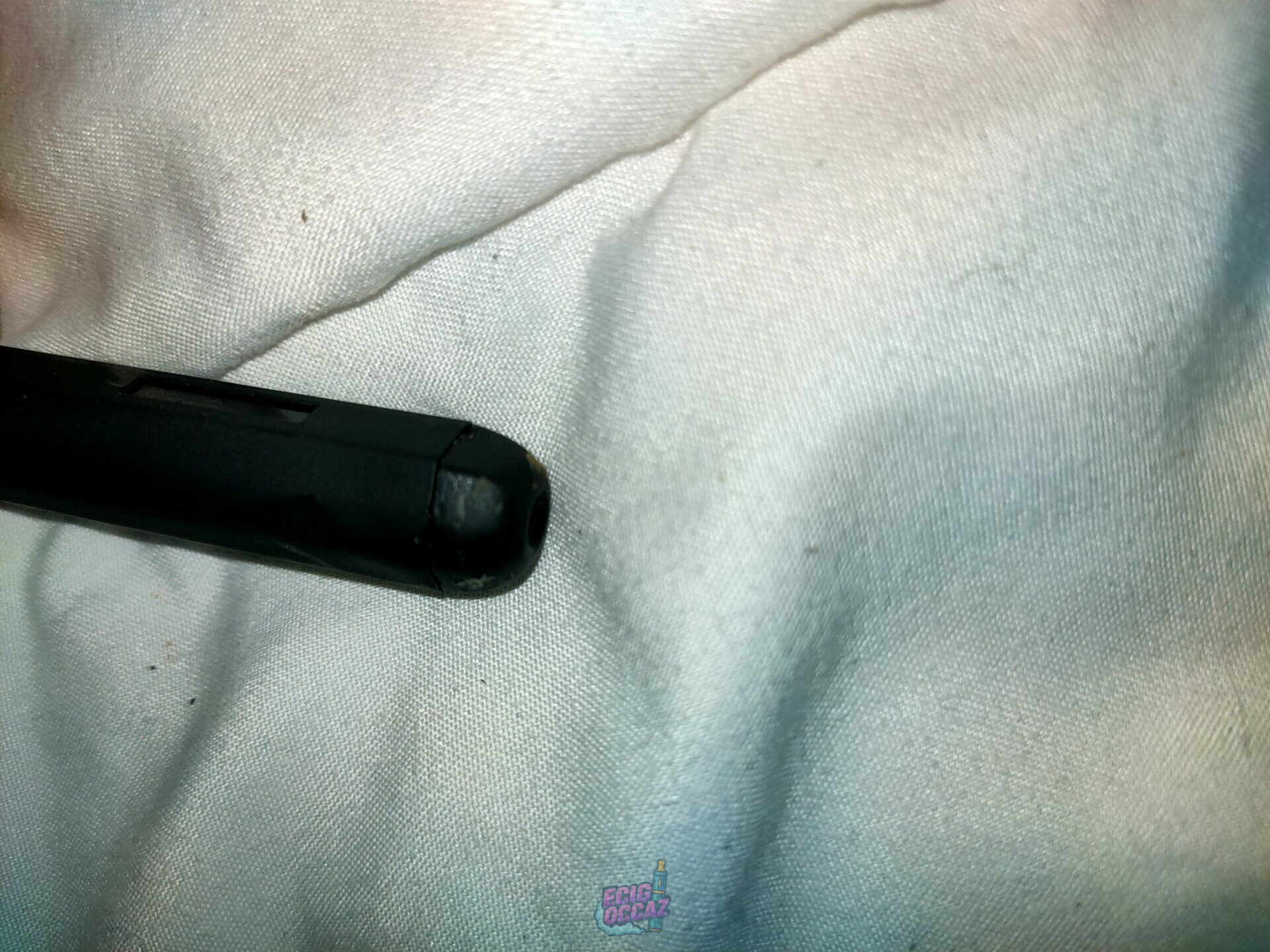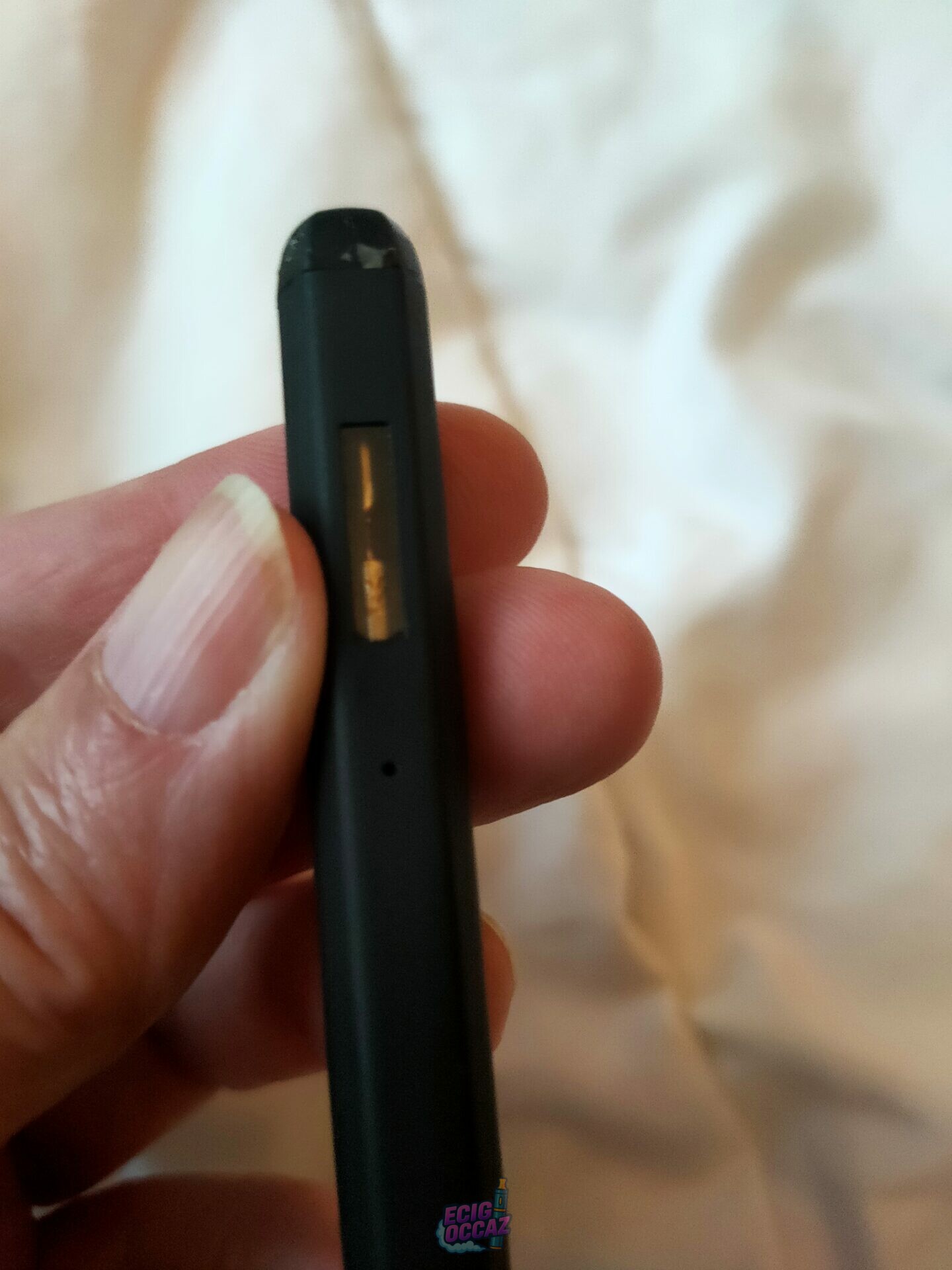 Déjà utilisée mais encore en très bon état. Quelques éraflures sur le capuchon de la cartouche que j’ai essayé de montrer sur photo : je n’arrivais pas à ouvrir facilement la cartouche et oui… j’ai utilisé mes dents.