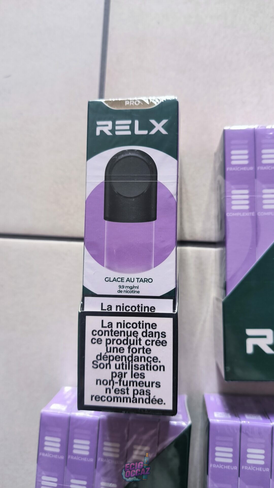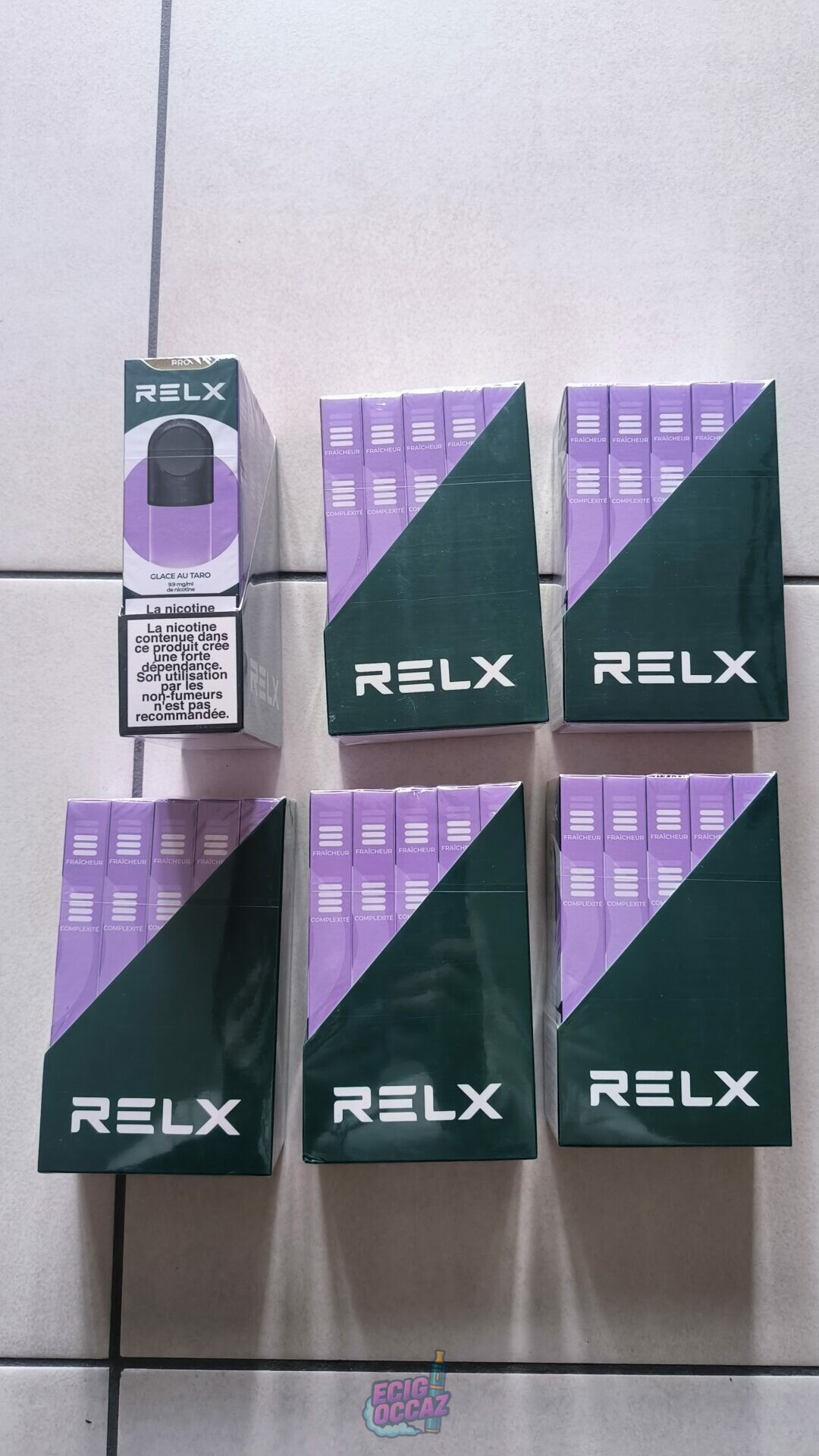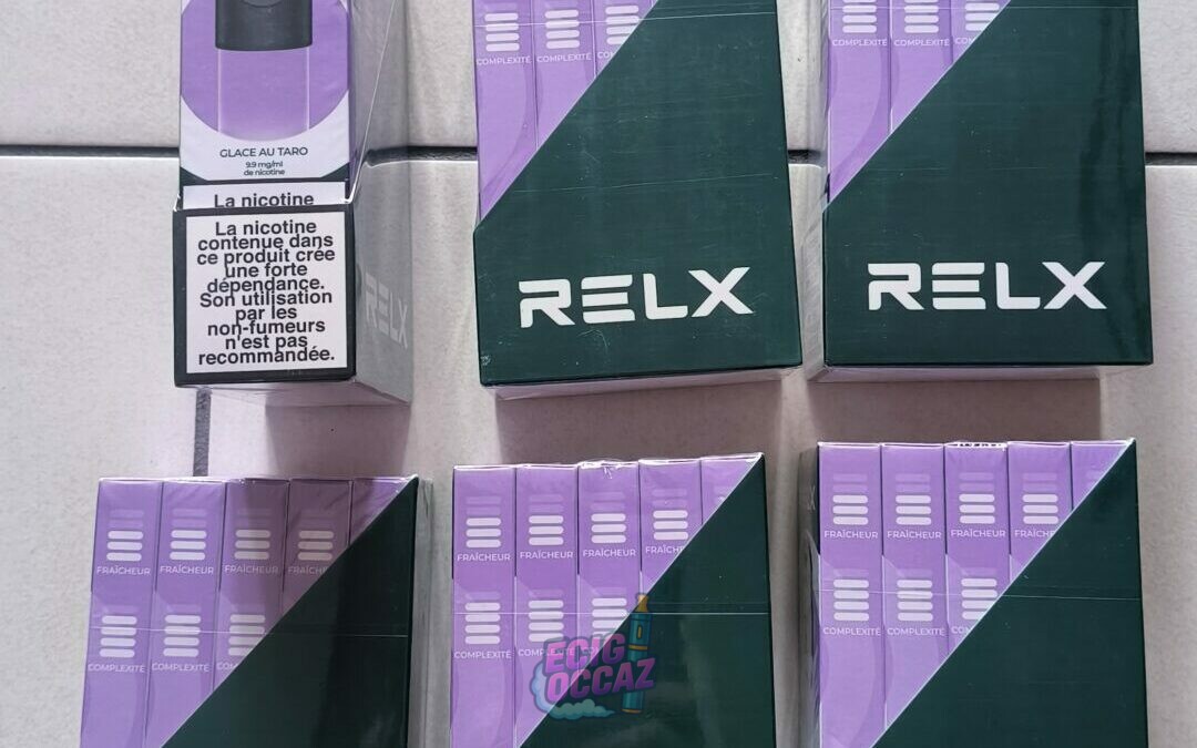 Recharge 6 boîtes X5 RELX Pod Pro 2 glace au taro, pr infinity et Essential. 9.9mg/ml nicotine, chaque étui contient 2 pod, fraîcheur 4/5, chaque recharge contient 600 bouffées environ, sous blister ( valeur totale 215€)
