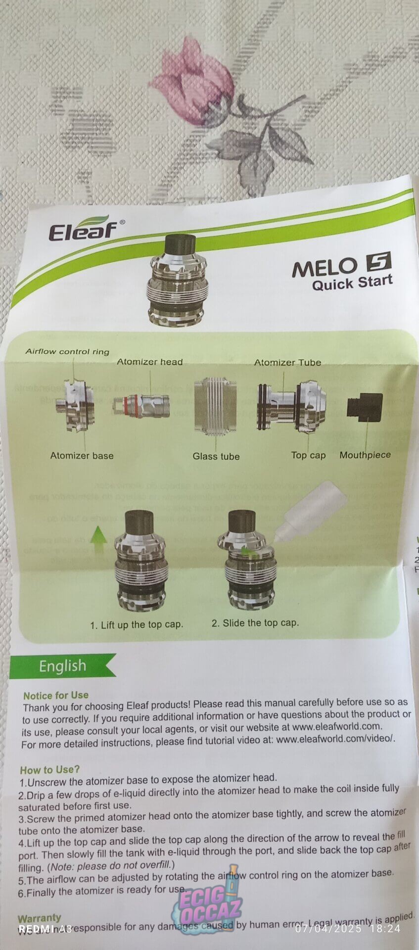 Atomiseur Eleaf Mélo 5 en bon état.