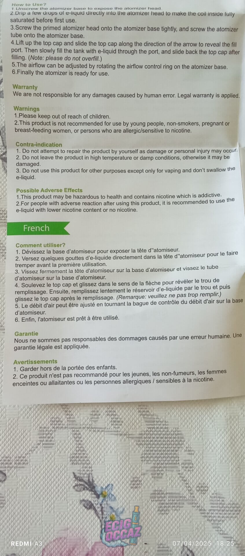 Vendu avec 3 résistances et manuel.