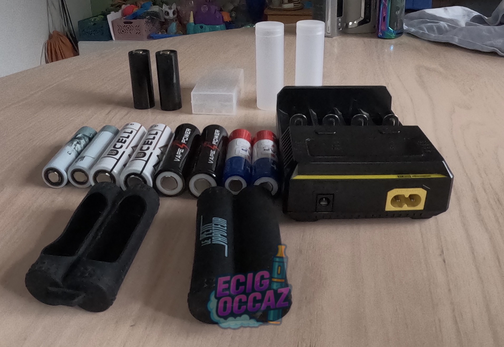 • 8x Accus (Vape Power, Ucell, etc.) avec boîtes de transport et protections silicone.