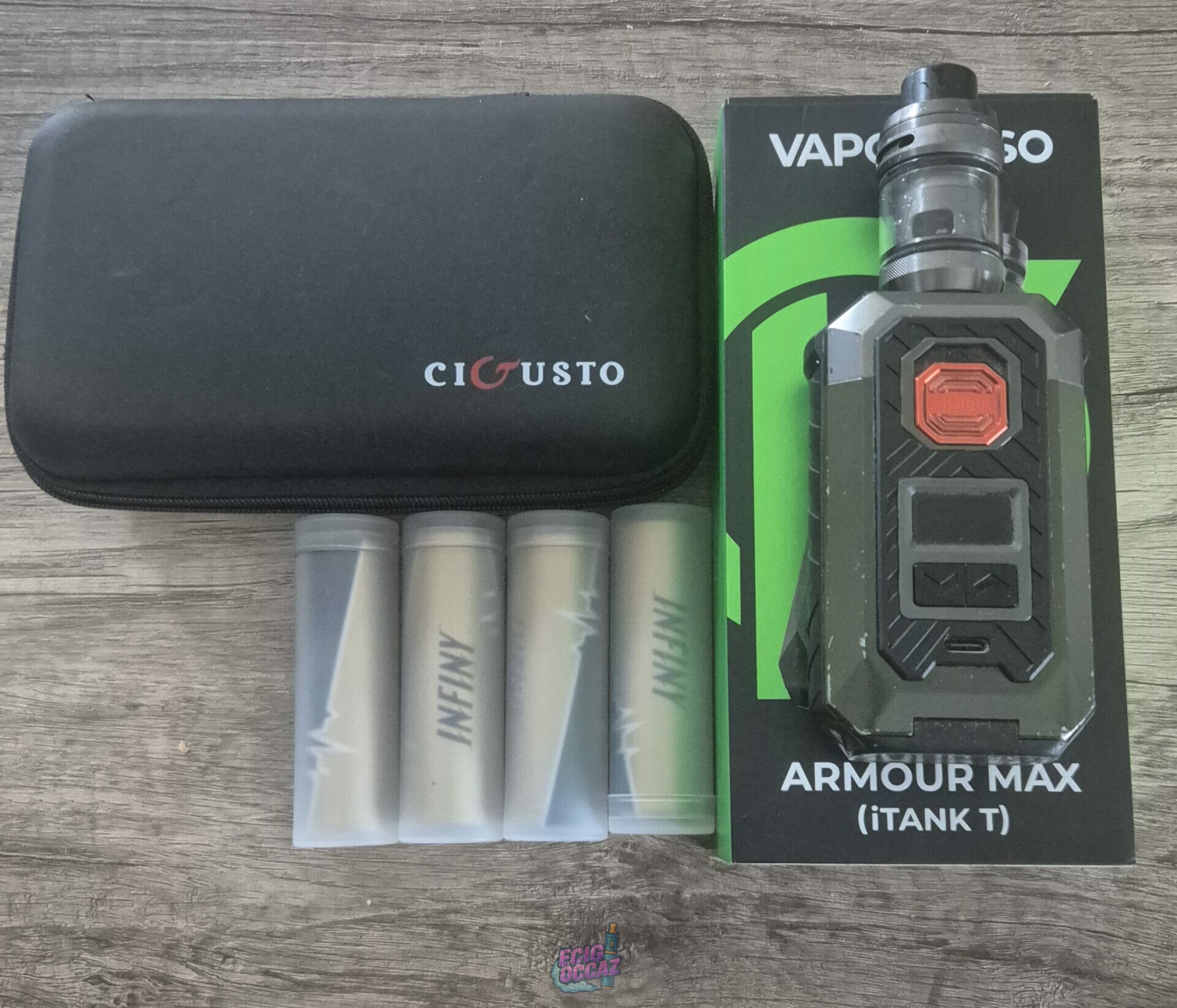 Vapoteuse en bon état, vendue avec 4 piles et un étui de rangement. Chargeur non fourni.