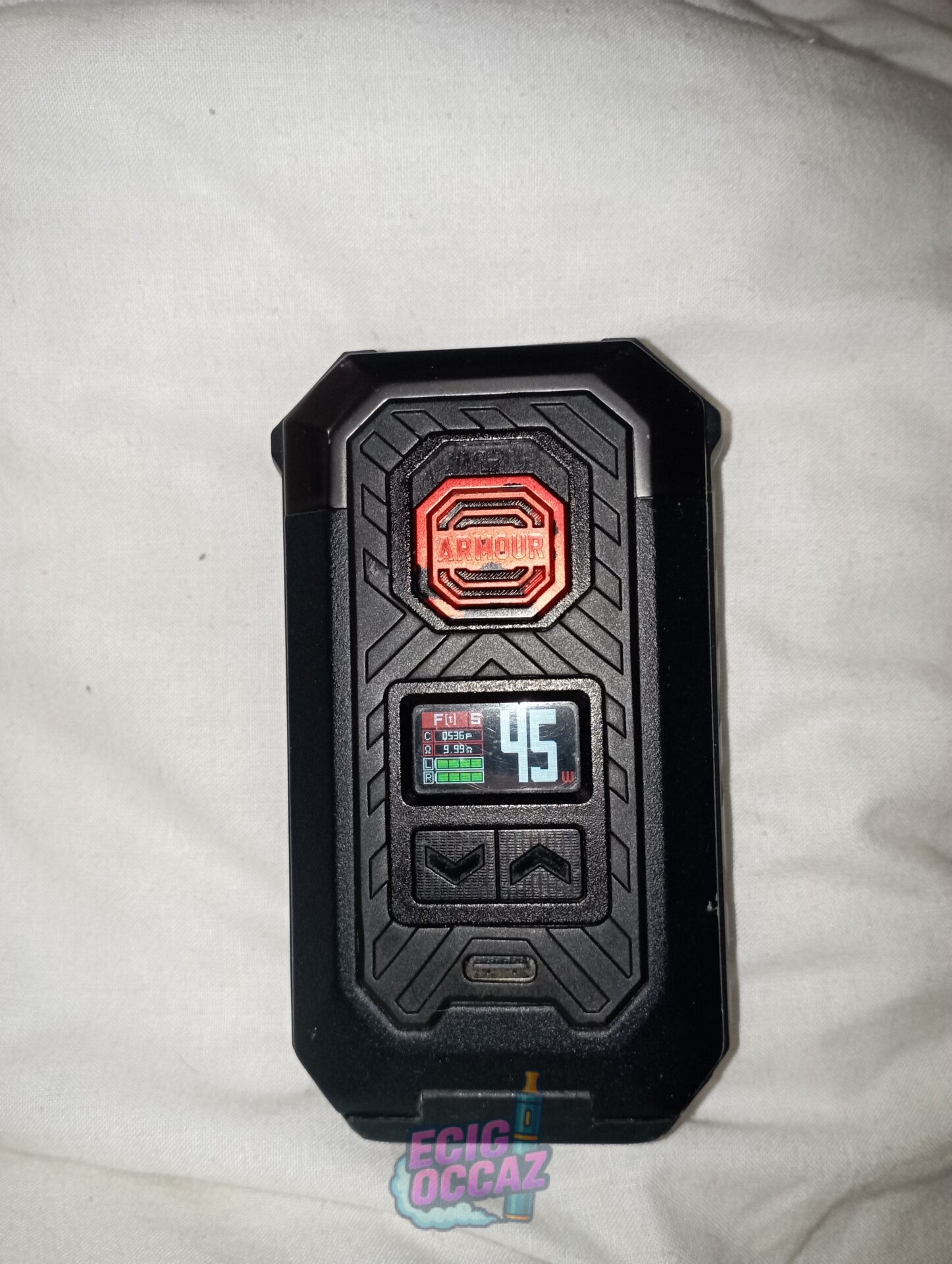 Vend Armour Max utilisée environ 8 mois. Vente avec accus et chargeur (équivalent 120€ neuf) Possibilité de vendre avec un atomiseur Zeus RTA (20€ neuf).
