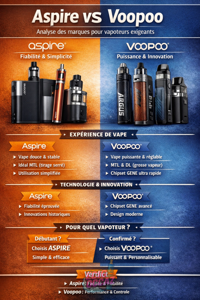 Dans l'univers dédié à la cigarette électronique, choisir une marque qui allie performance, innovation et fiabilité peut vite devenir un défi. Alors que la technologie vape avance à grands pas, Aspire et Voopoo se démarquent nettement en proposant des...